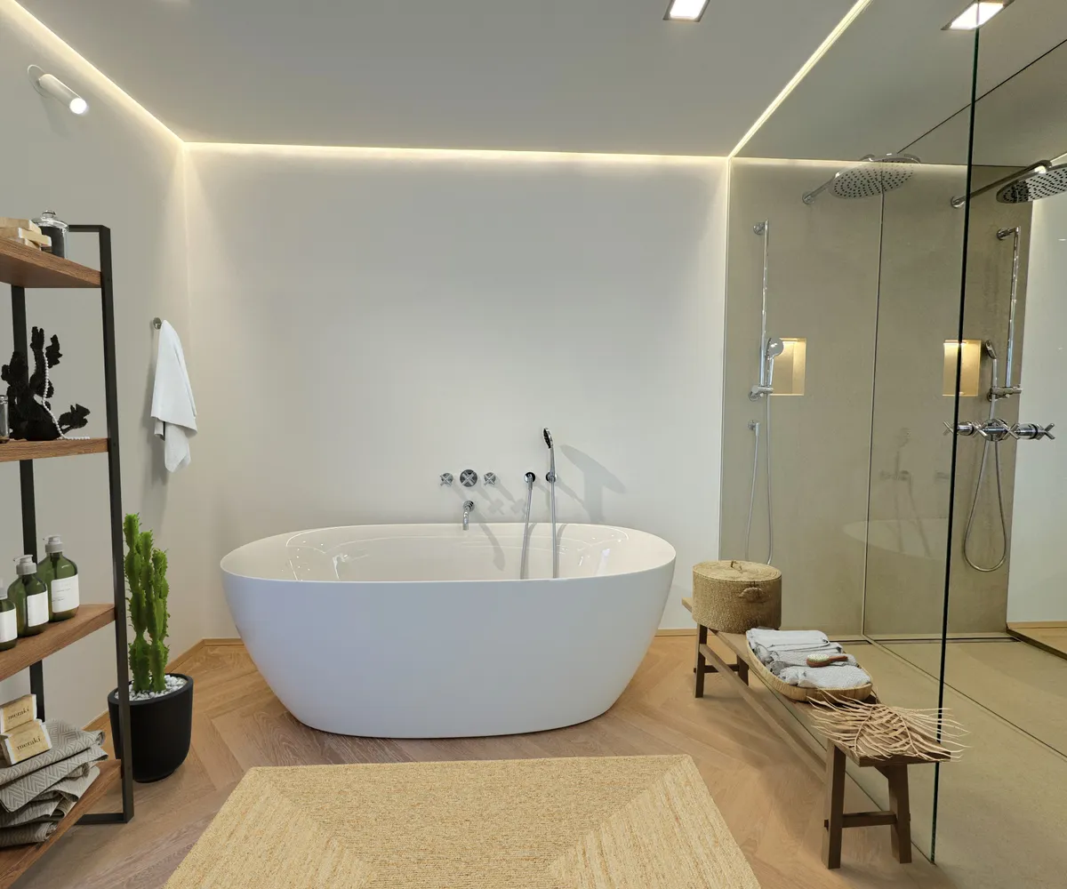 Ein eleganter Kamin setzt einen stimmungsvollen Kontrapunkt und schenkt behagliche Wärme an kühleren Tagen – die perfekte Kulisse für entspannte Abende. Ergänzt wird diese Ebene durch zwei ruhige Schlafzimmer, ein edles Badezimmer mit freistehender Wanne, großzügiger Walk-in-Dusche und Doppelwaschbecken, ein separates WC, einen praktischen Abstellraum sowie einen Balkon mit Blick in den Innenhof.