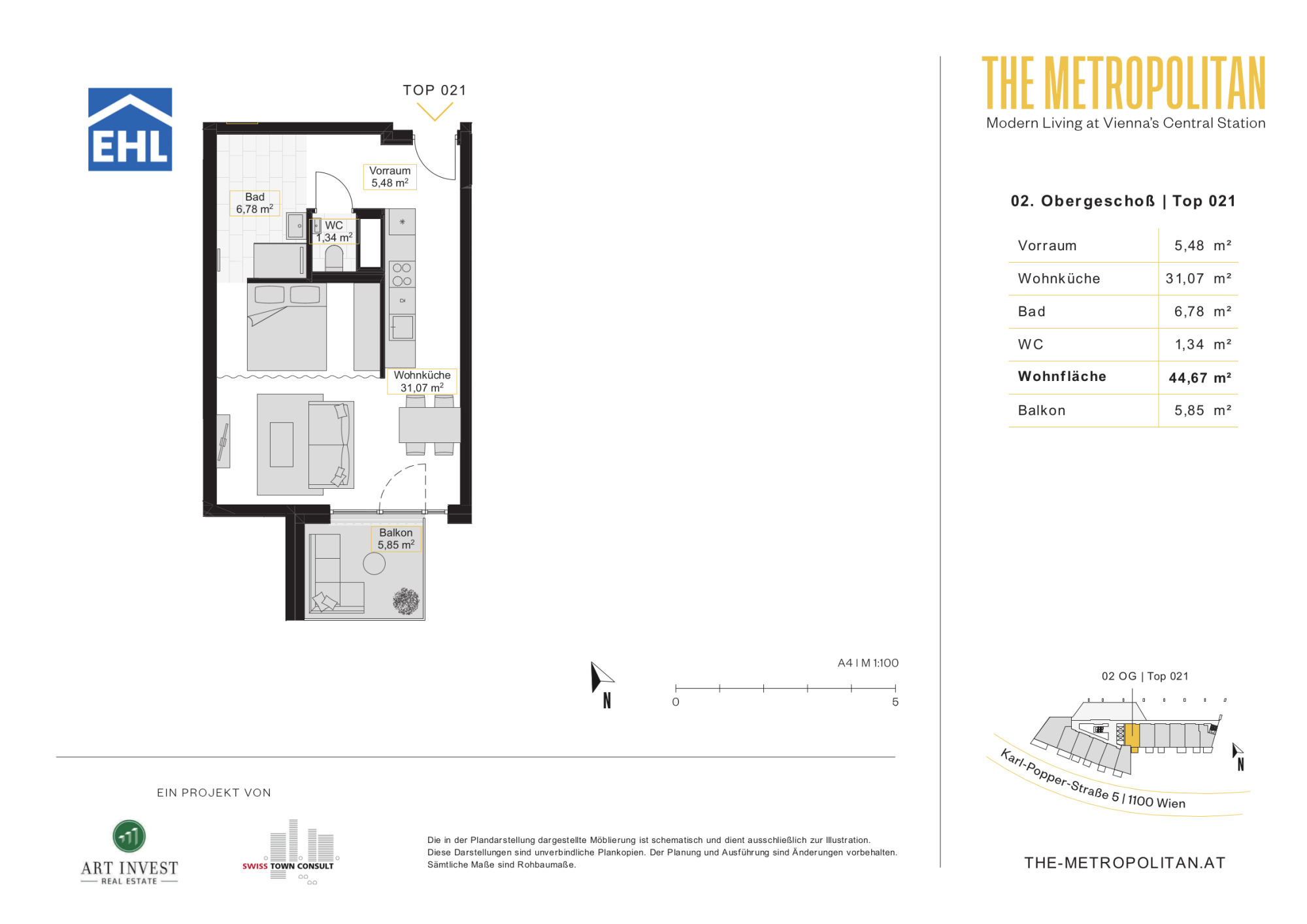 Das moderne Wohnbauprojekt „METROPOLITAN – Modern Living“ befindet sich im aufstrebenden und lebendigen Sonnwendviertel, nur wenige Gehminuten vom neu errichteten Hauptbahnhof entfernt. Die Lage bietet eine hervorragende Infrastruktur mit zahlreichen Einkaufsmöglichkeiten, Restaurants und Cafés in der Umgebung. Besonders hervorzuheben ist die Nähe zum Helmut-Zilk-Park, der Erholung und Freizeitspaß für die ganze Familie bietet.