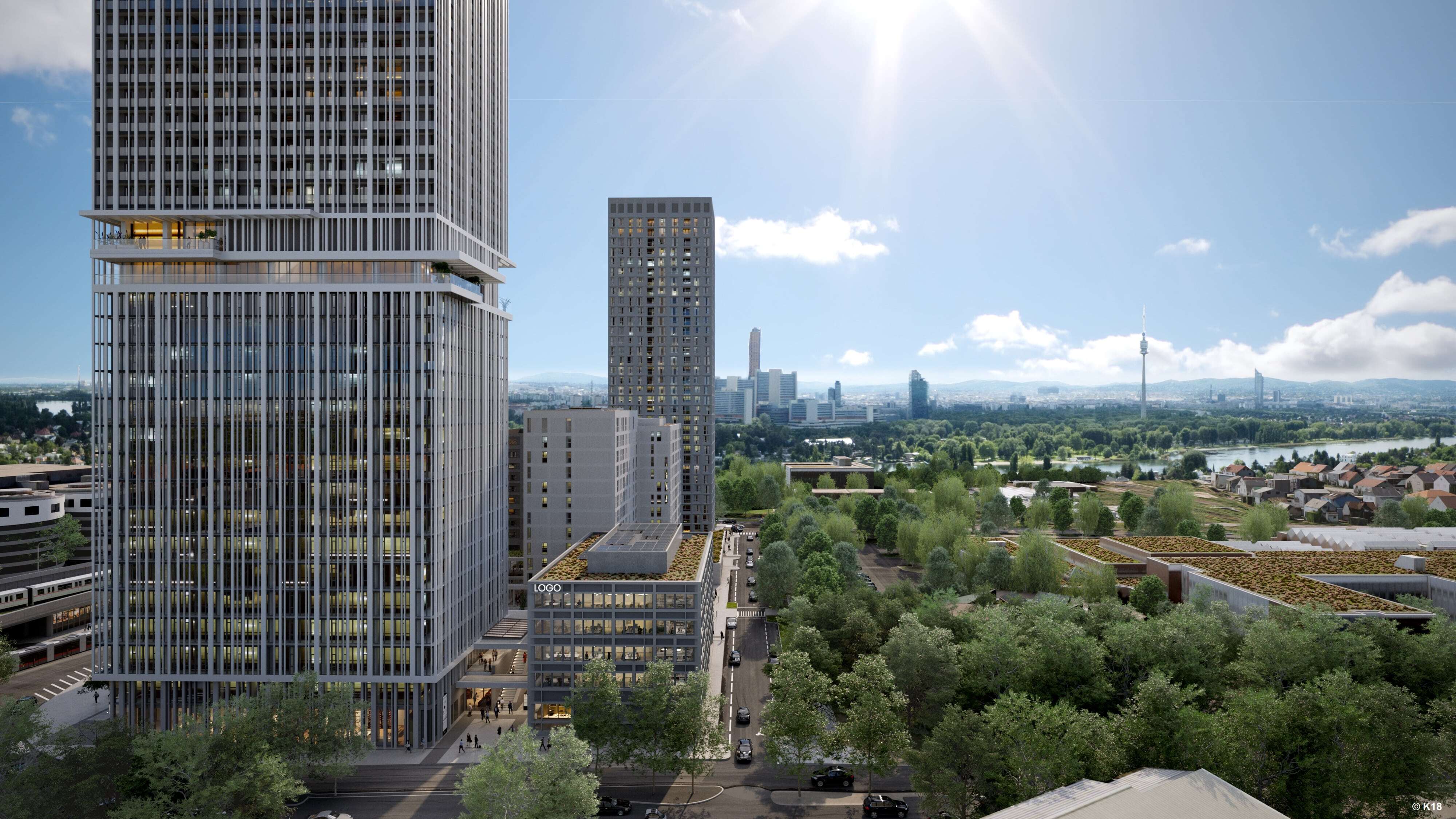 Direkt an der U1-Station Kagran und gegenüber dem Donau Zentrum entsteht ein rund 155 Meter hoher Wohnturm mit 45 Etagen – ein neues Landmark für modernes Wohnen in Wien.