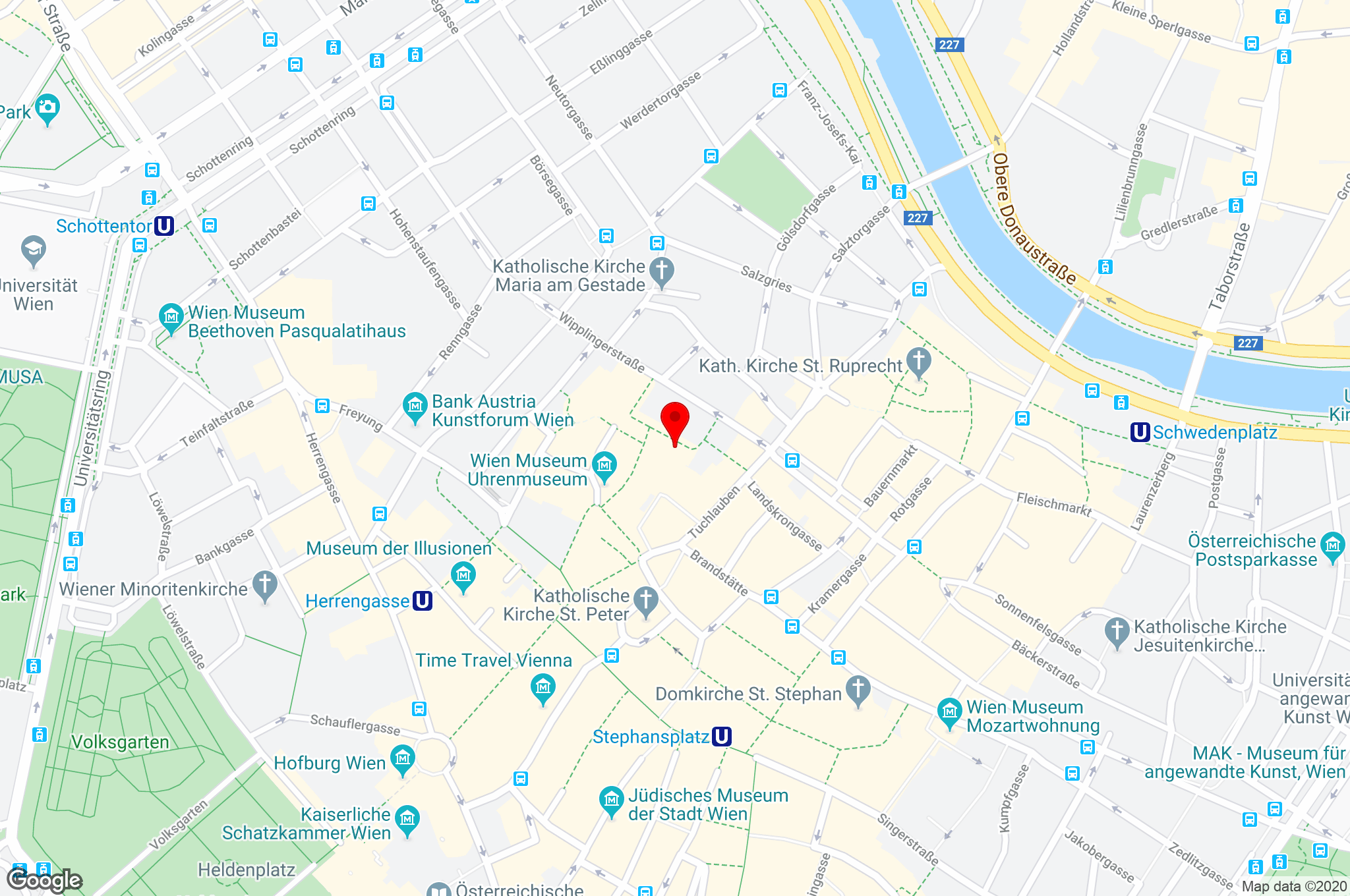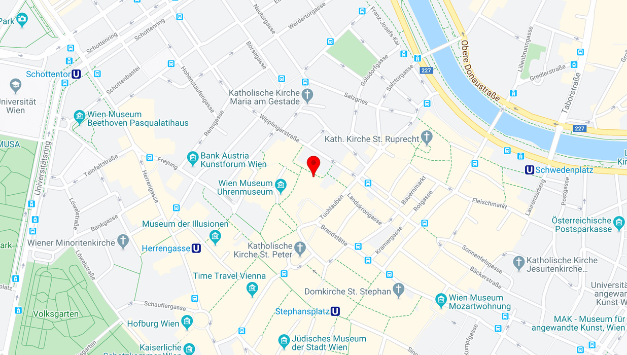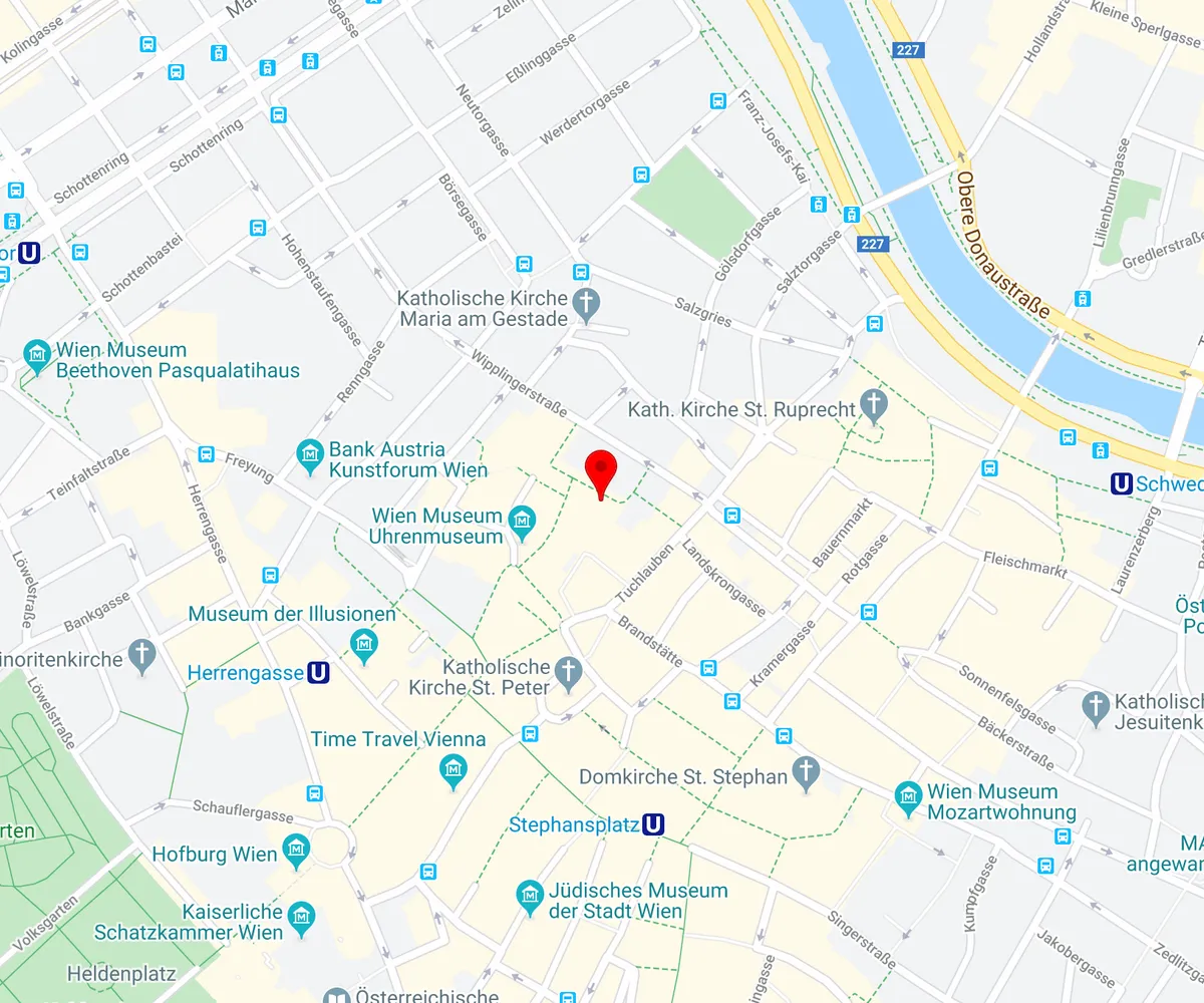 U-Bahnlinie U3 „Herrengasse“ und "Stephansplatz" U-Bahnlinie U1 „Schwedenplatz“