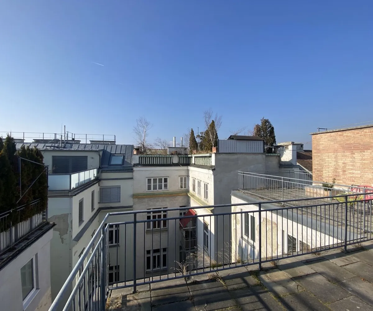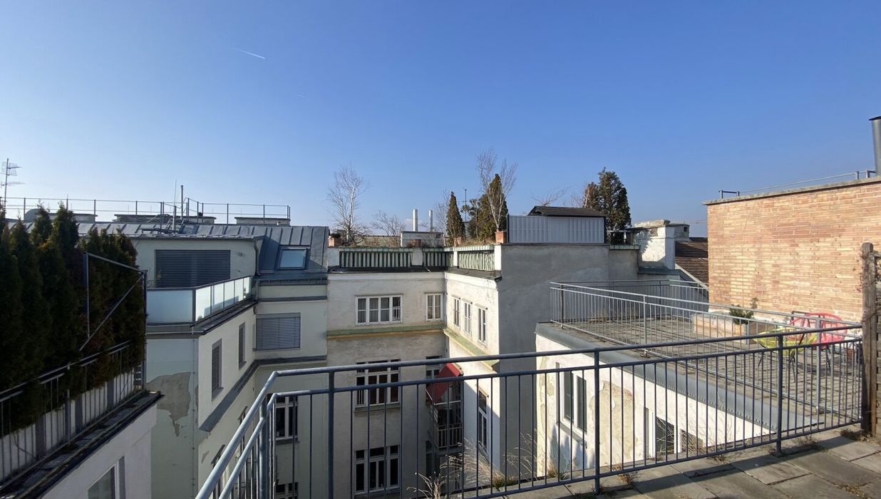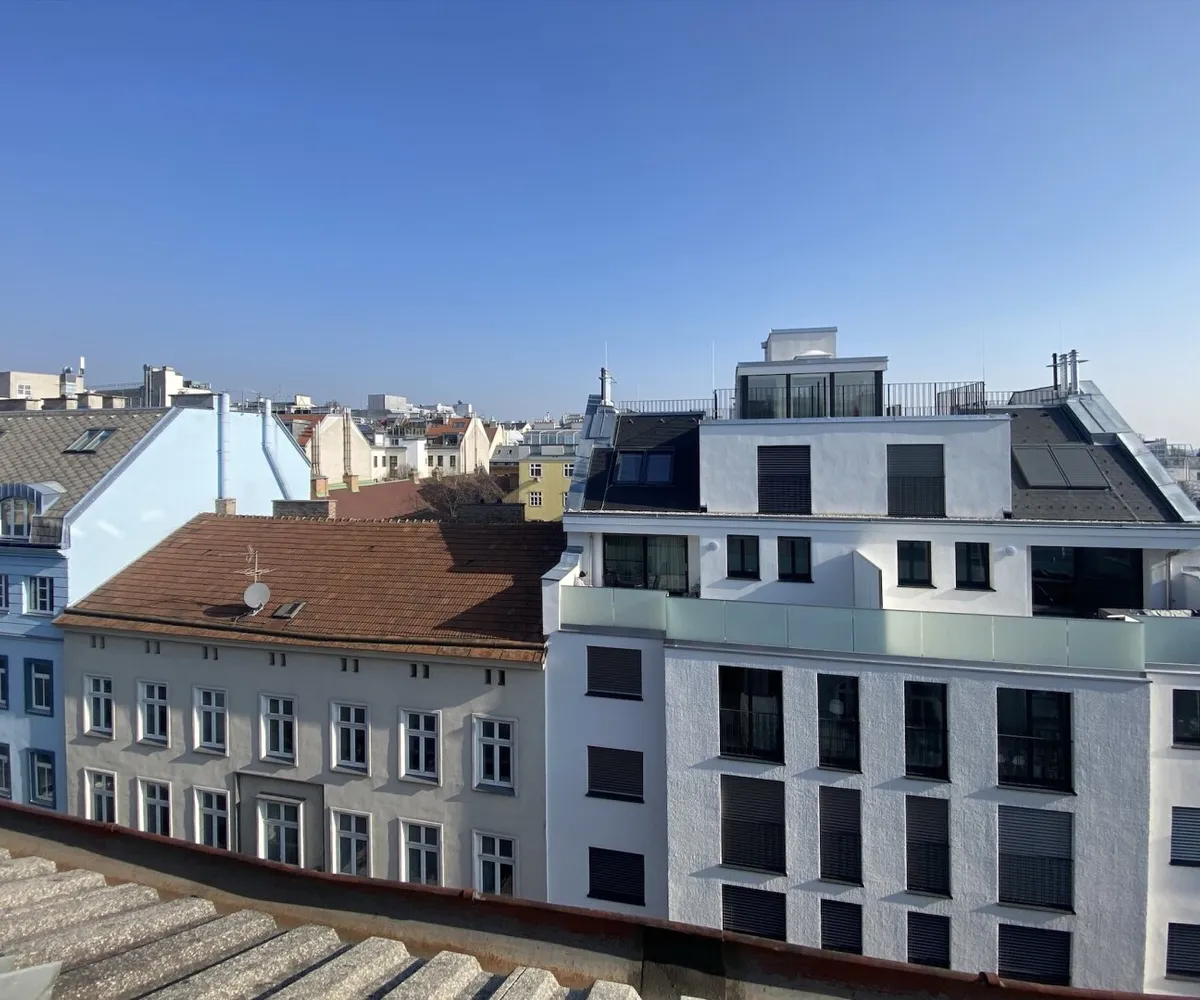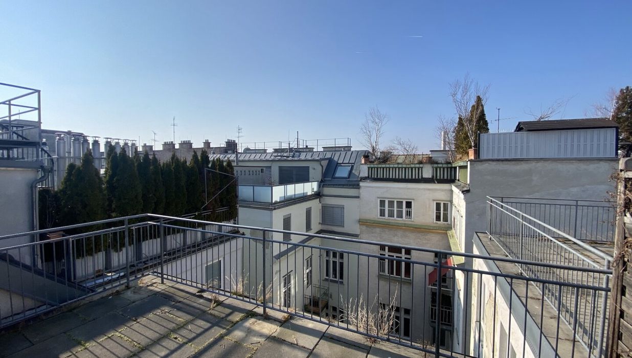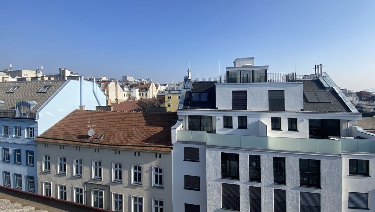 Zur befristeten Vermietung auf 5 Jahre mit Verlängerungsoption gelangt eine ca. 98 qm große Dachgeschosswohnung mit 3 Zimmern und einer ca. 19 qm großen Terrasse mit Blick über die Dächer von Wien. Die Wohnung im 5. Liftstock wird mittels Gastherme und Radiatoren beheizt und punktet mit hochwertiger Ausstattung.