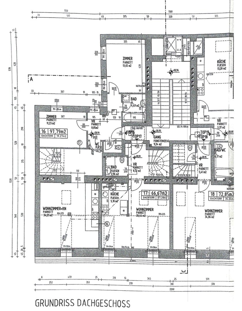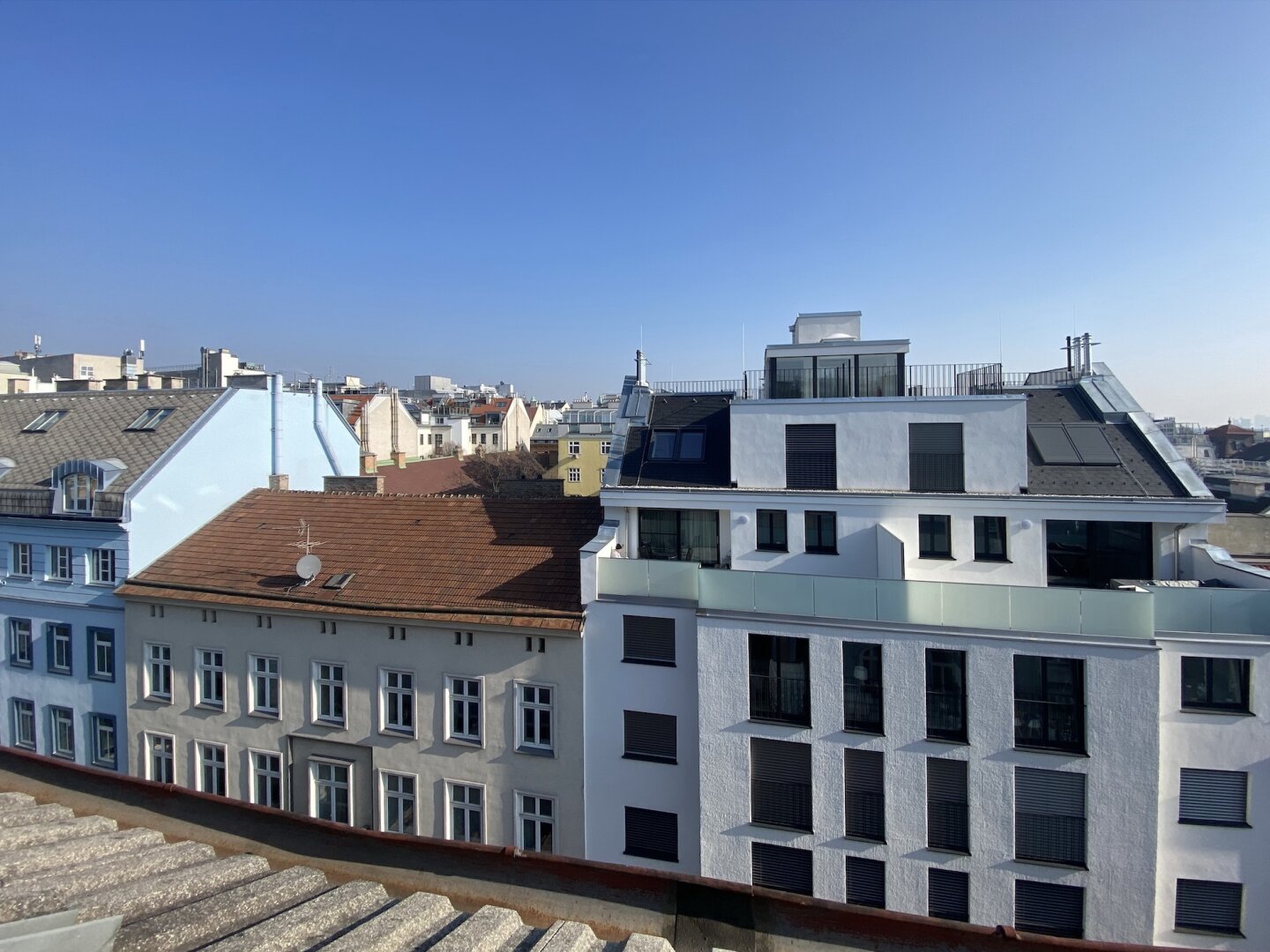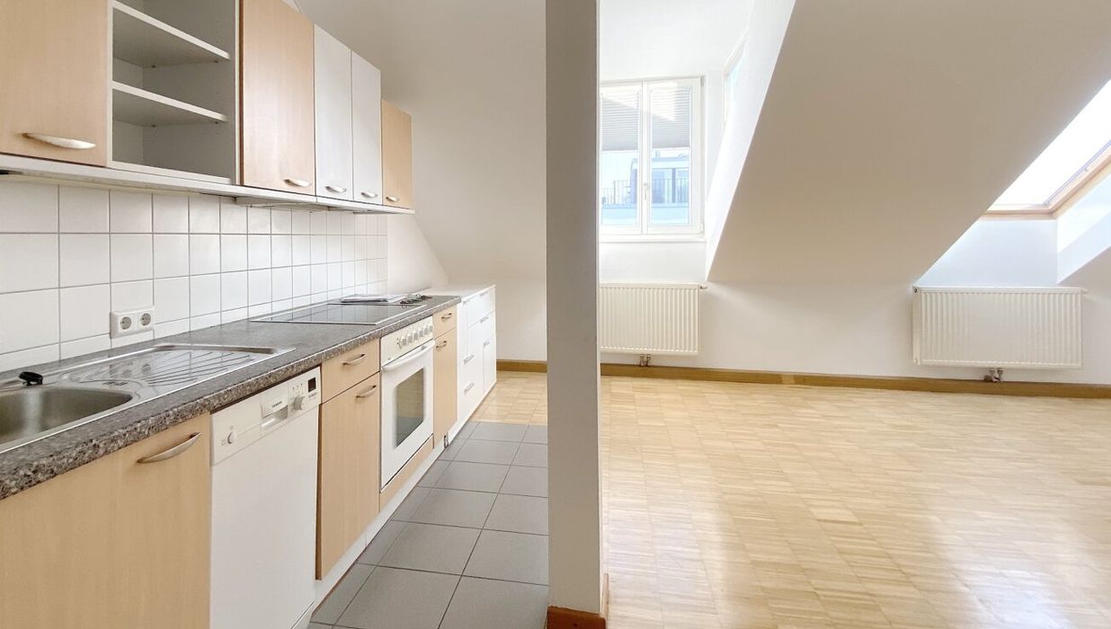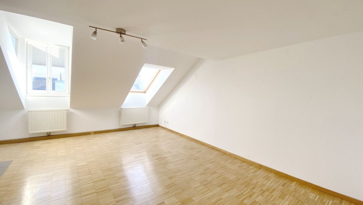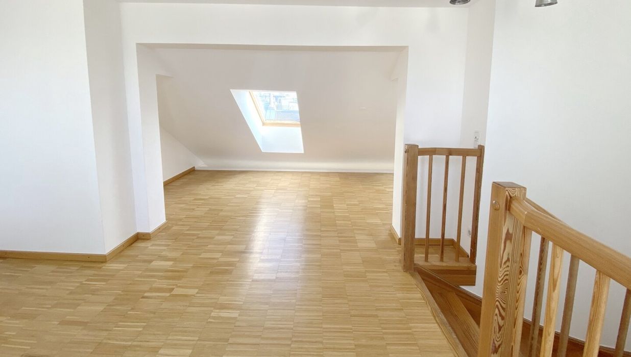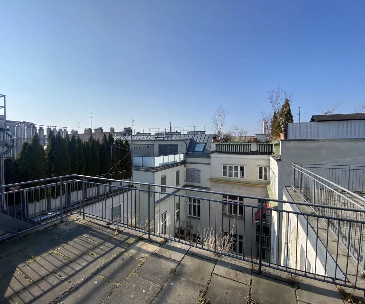 Zur befristeten Vermietung auf 5 Jahre mit Verlängerungsoption gelangt eine ca. 98 qm große Dachgeschosswohnung mit 3 Zimmern und einer ca. 19 qm großen Terrasse mit Blick über die Dächer von Wien. Die Wohnung im 5. Liftstock wird mittels Gastherme und Radiatoren beheizt und punktet mit hochwertiger Ausstattung.