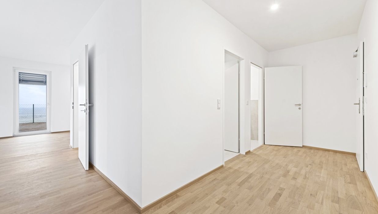 In Zukunft könnte Ihr Tag so starten: Sie blinzeln bereits beim Aufstehen durch die bodentiefen Fenster der Sonne entgegen, stellen Ihre Füße auf den angenehm natürlichen Holzboden und machen die erste Schritte in den Tag Richtung Badezimmer, wo Sie die mediterranen Fliesen gedanklich in den Süden reisen lassen. Jetzt fehlt nur noch der originale Espresso, den Sie in der geräumigen Wohnküche zubereiten und dessen Duft alle Sinne weckt. Nun aber raus ins Freie: die Hebe-Schiebetüre auf, den Geruch des frischen Tages einatmend und Sie wissen, wie bella Ihr Vita ist.