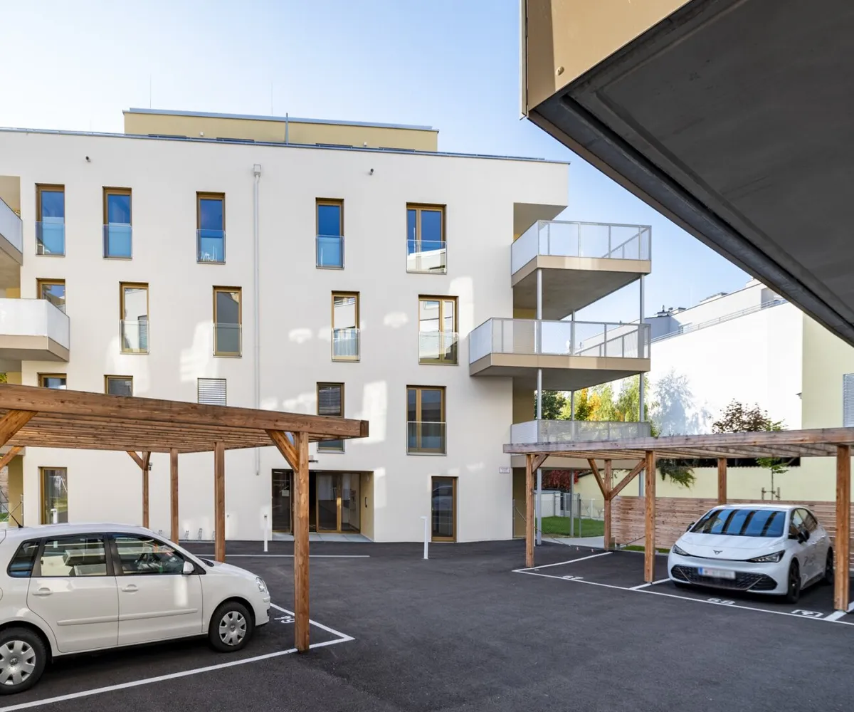 Zusätzlich sind jeder Wohnung 2 Fahrradabstellplätze sowie ein Lagerabteil (mitunter auf der Ebene der Wohnung) zugeordnet. Ein Tiefgaragenplatz kann erworben werden.