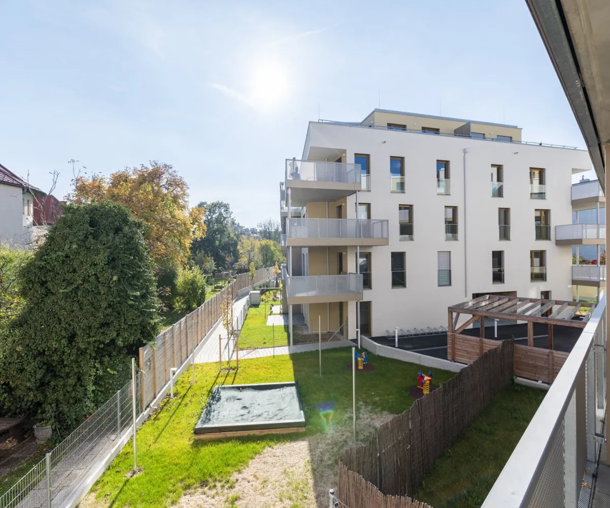 Zusätzlich sind jeder Wohnung 2 Fahrradabstellplätze und ein Lagerabteil (mitunter auf der Ebene der Wohnung) zugeordnet. Ein Tiefgaragenplatz kann erworben werden (ab € 16.500,–).