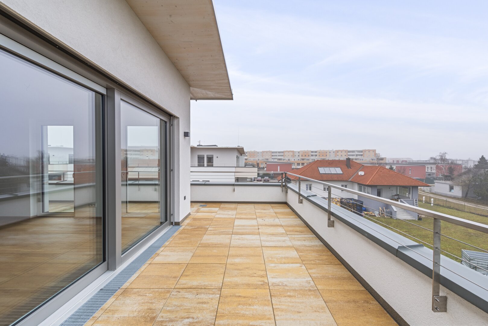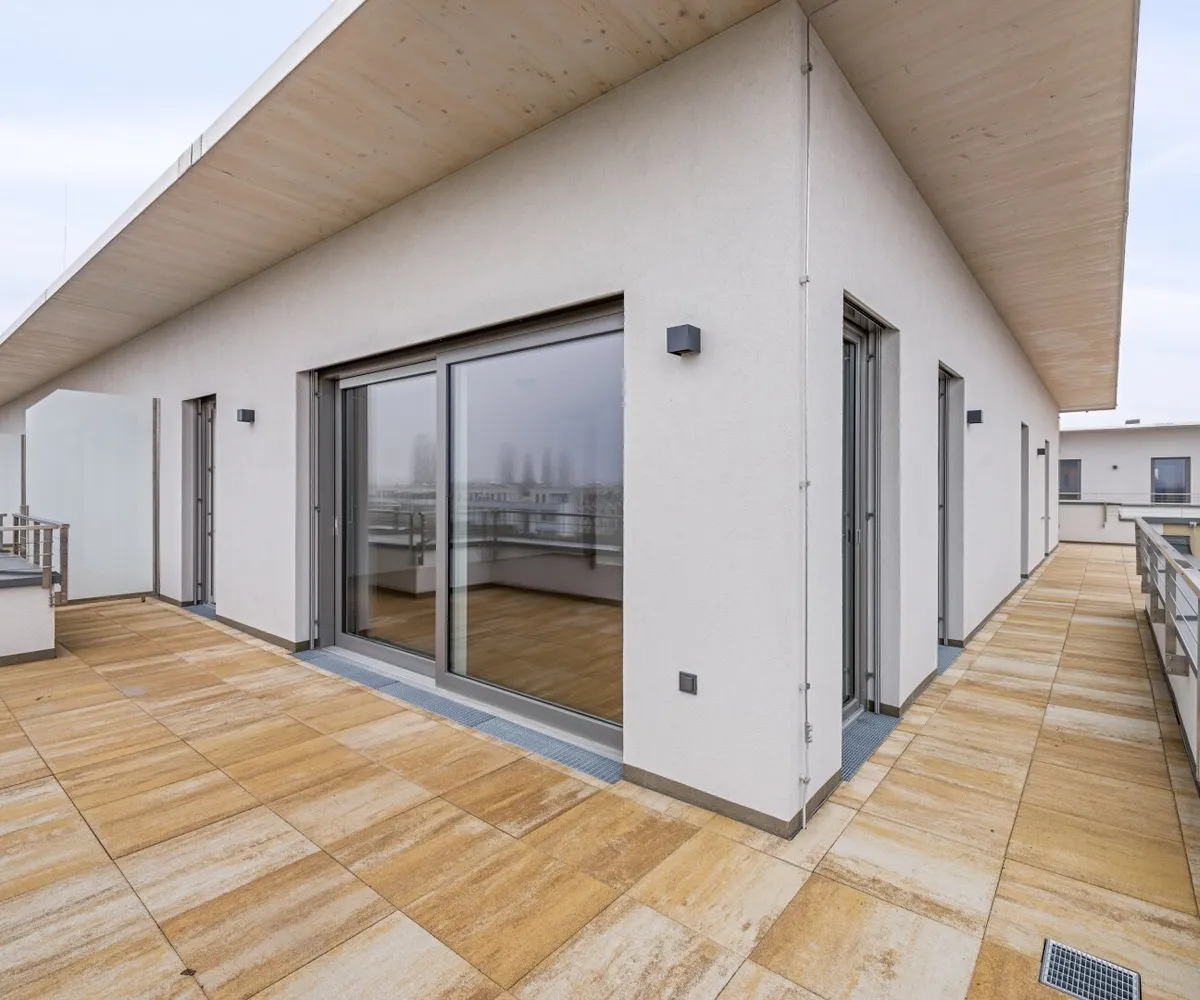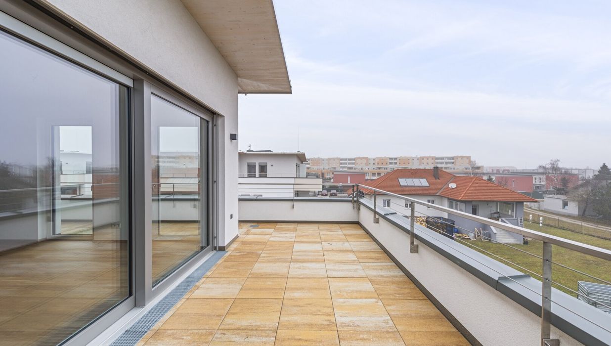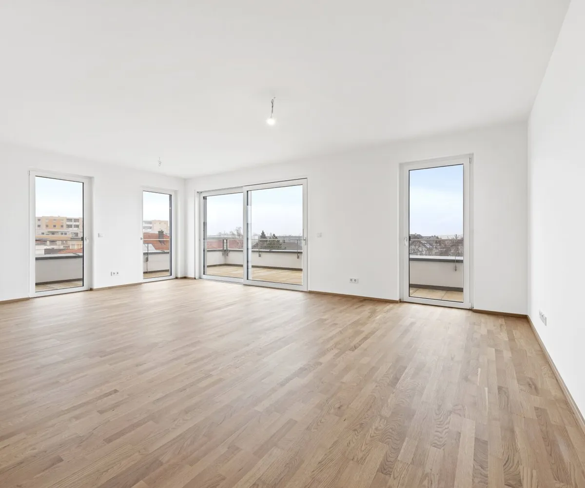 Die wunderschöne 4-Zimmer-Wohnung ist im 2. Obergeschoss gelegen und bietet eine Wohnfläche von ca. 111,27 m² sowie eine großzügige Terrasse mit ca. 74,74 m². Durch die Erreichbarkeit der Terrasse aus jedem Raum und aus dem Bad verleiht diese Einheit besonderes Wohl- und Freiheitsgefühl. Jedem, der hier heimisch wird.