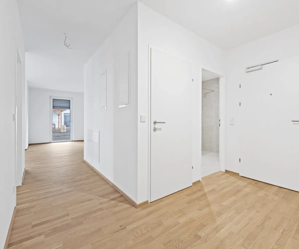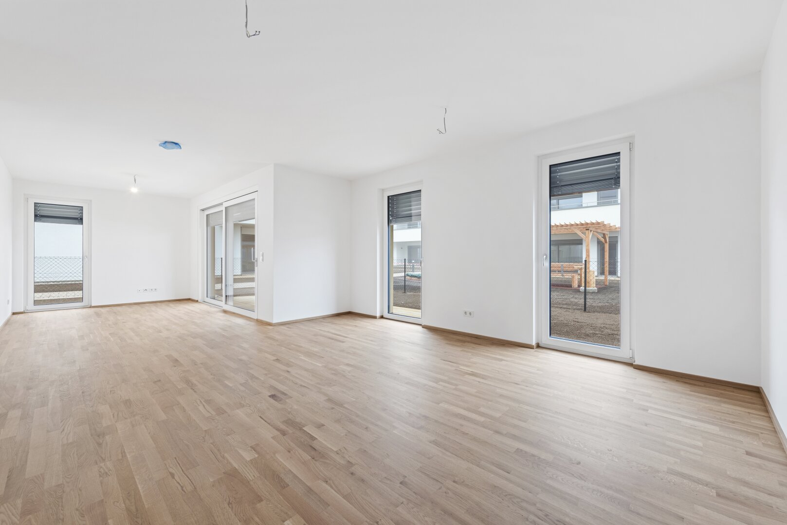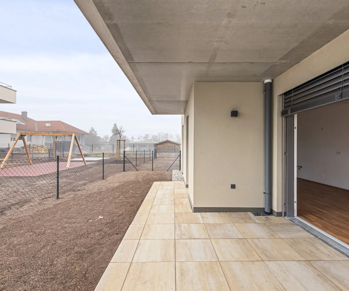 Die harmonisch geschnittene 3-Zimmer-Wohnung ist im Erdgeschoss gelegen und bietet eine Wohnfläche von ca. 82,78 m² sowie eine Terrasse samt Loggia mit ca. 13,5 m². Ein weiteres Highlight dieser Einheit: der großzügige Garten mit ca. 63,8 m². Zukünftige Mieter finden hier alles, was sie brauchen, um ein bella vita führen zu können.
