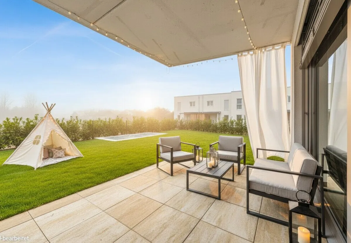 In Zukunft könnte Ihr Tag so starten: Sie blinzeln bereits beim Aufstehen durch die bodentiefen Fenster der Sonne entgegen, stellen Ihre Füße auf den angenehm natürlichen Holzboden und machen die erste Schritte in den Tag Richtung Badezimmer, wo Sie die mediterranen Fliesen gedanklich in den Süden reisen lassen. Jetzt fehlt nur noch der originale Espresso, den Sie in der geräumigen Wohnküche zubereiten und dessen Duft alle Sinne weckt. Nun aber raus ins Freie: die Hebe-Schiebetüre auf, den Geruch des frischen Tages einatmend und Sie wissen, wie bella Ihr Vita ist.