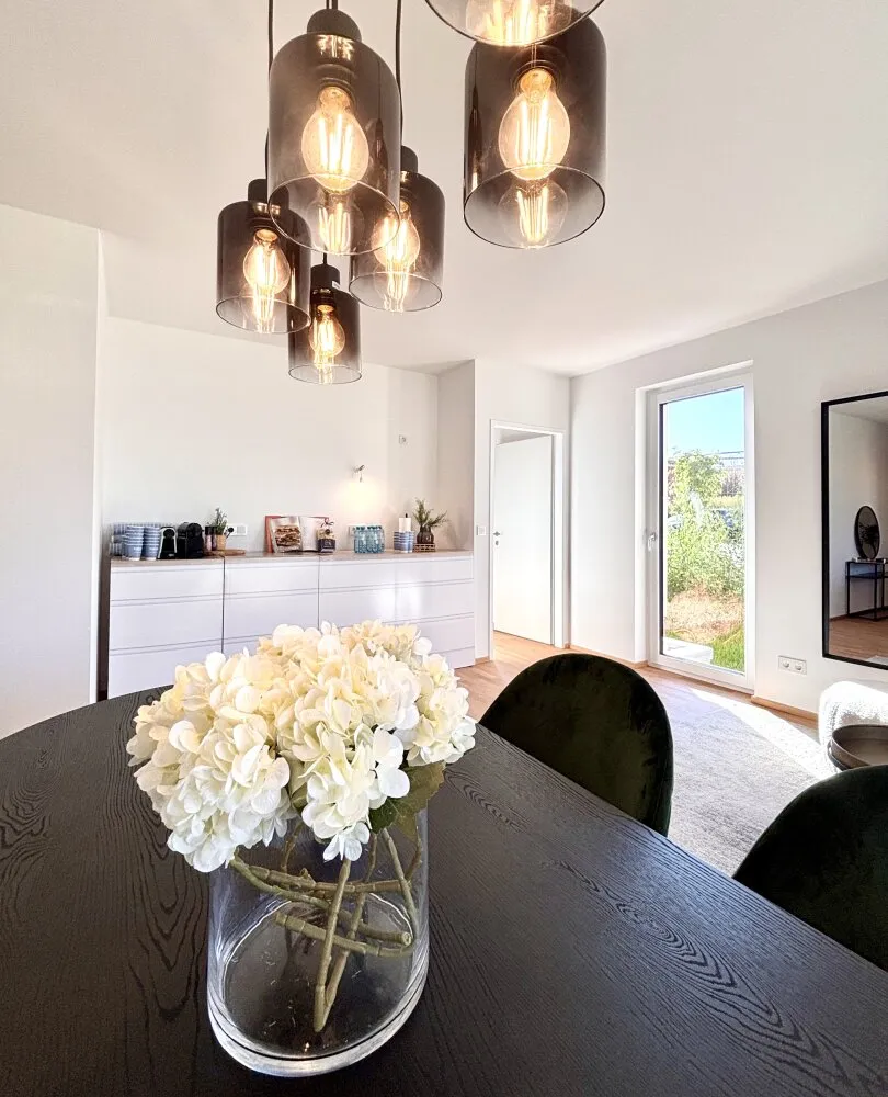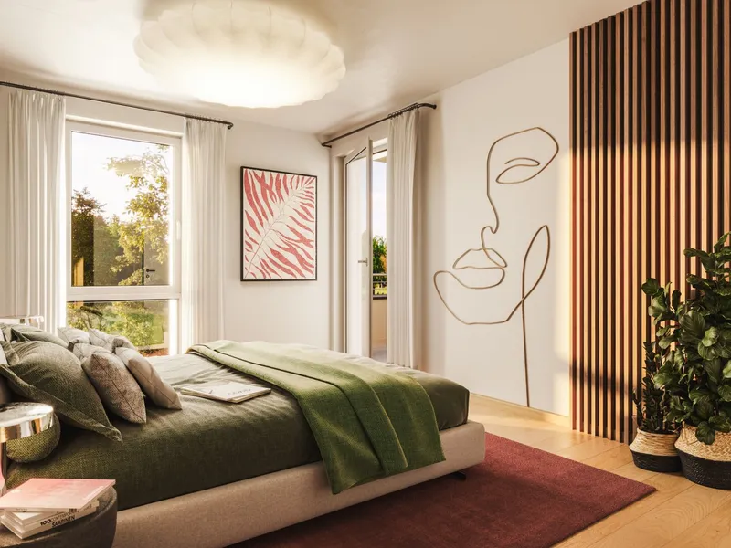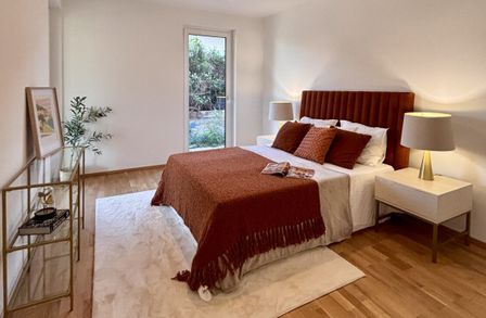 In Zukunft könnte Ihr Tag so starten: Sie blinzeln bereits beim Aufstehen durch die bodentiefen Fenster der Sonne entgegen, stellen Ihre Füße auf den angenehm natürlichen Holzboden und machen die erste Schritte in den Tag Richtung Badezimmer, wo Sie die mediterranen Fliesen gedanklich in den Süden reisen lassen. Jetzt fehlt nur noch der originale Espresso, den Sie in der geräumigen Wohnküche zubereiten und dessen Duft alle Sinne weckt. Nun aber raus ins Freie: die Hebe-Schiebetüre auf, den Geruch des frischen Tages einatmend und Sie wissen, wie bella Ihr Vita ist.