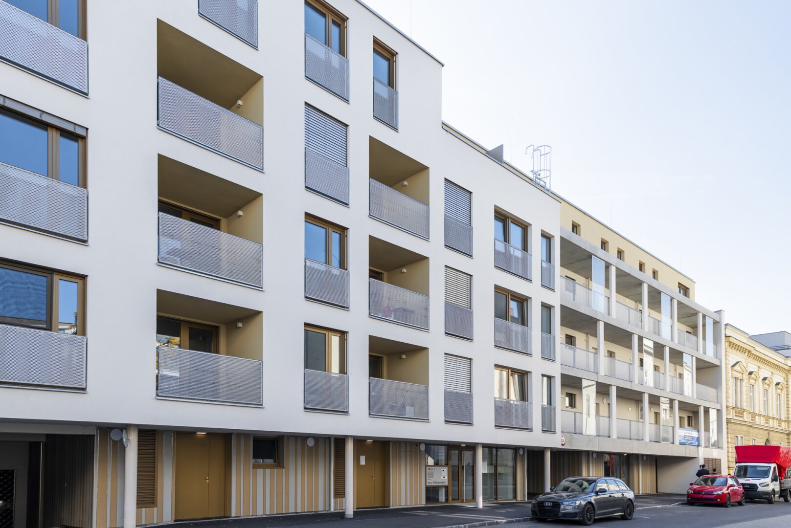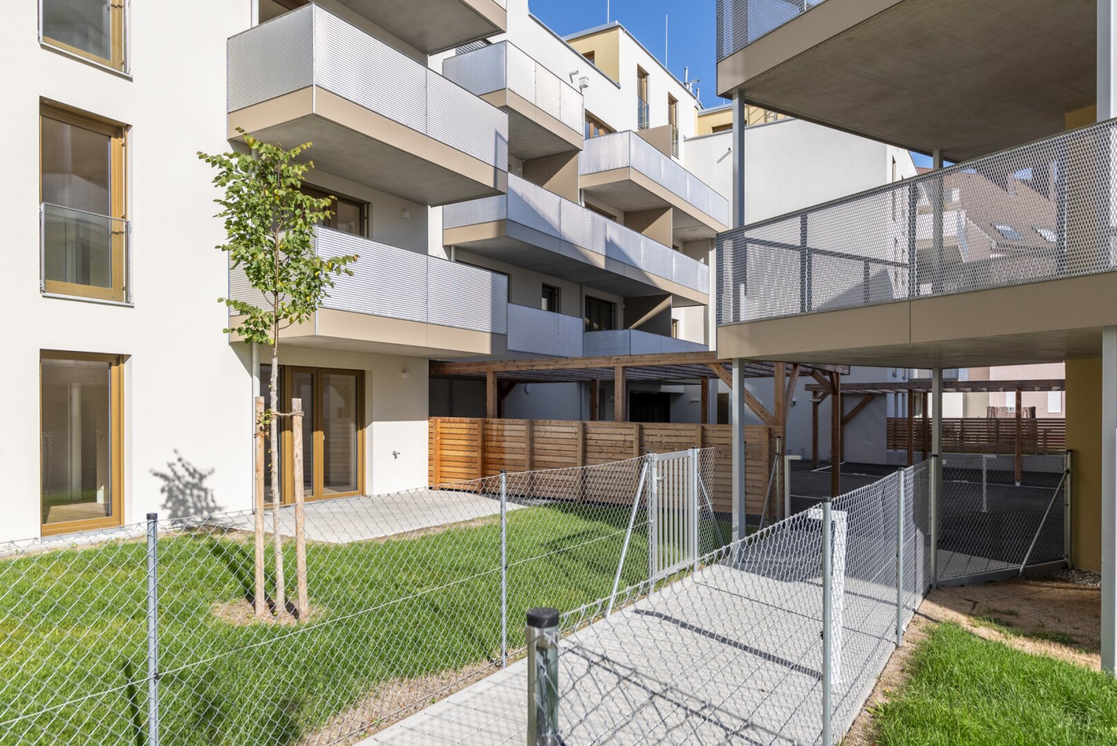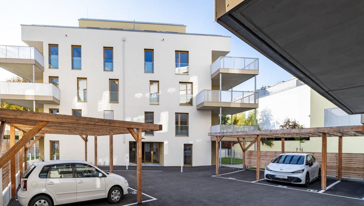 Zusätzlich sind jeder Wohnung 2 Fahrradabstellplätze und ein Lagerabteil (mitunter auf der Ebene der Wohnung) zugeordnet. Ein Tiefgaragenplatz kann erworben werden (ab € 16.500,–).