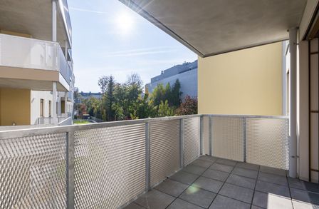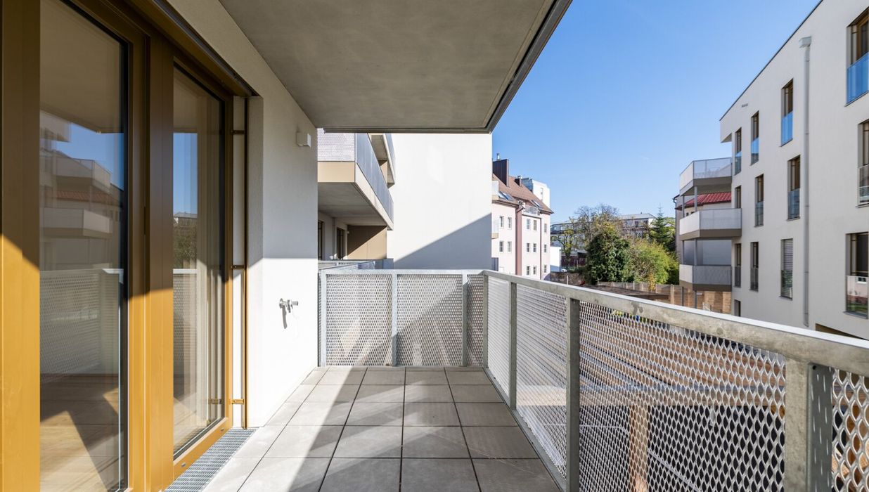 Die helle 2-Zimmer-Wohnung ist im 1. Obergeschoss gelegen und bietet eine Wohnfläche von ca. 64,92 m² sowie einen Balkon mit ca. 7,58 m². Ein Schrankraum sowie ein Bad mit Fenster gehören ebenso zu dieser Immobilie wie ein urbaner Blick.
