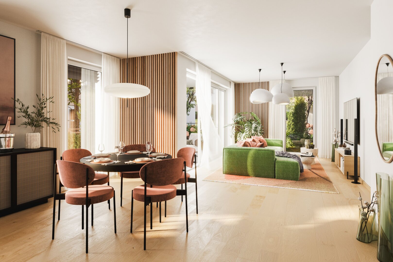 Fahrradabstellplätze, Kinderwagenraum, Spielplatz mit Pergola und Sitzmöglichkeiten sowie eine Tiefgarage vervollständigen das Angebot des durchdachten, modernen und nachhaltigen Projekts.