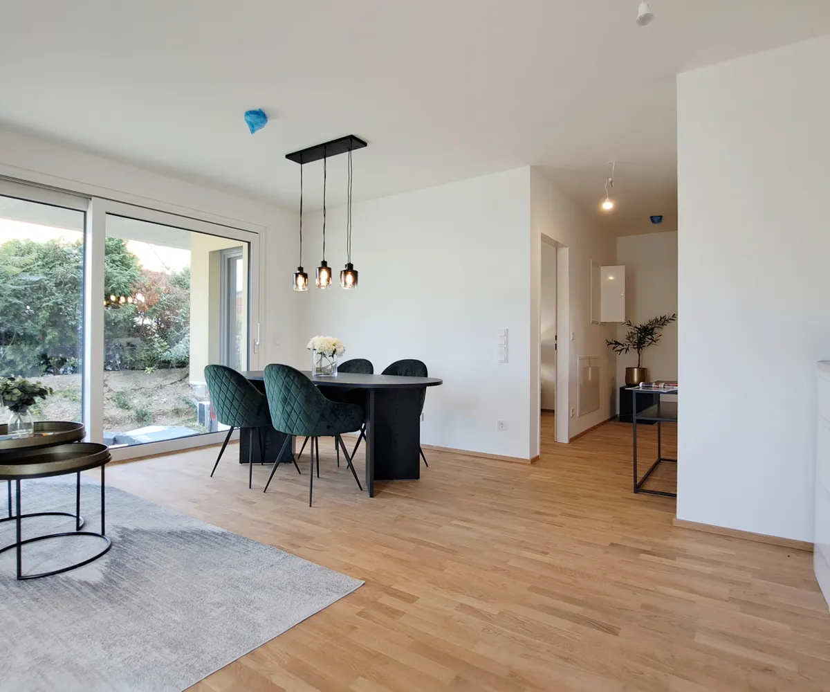 Alle Wohnungen überzeugen durch ihre optimal gestalteten Grundrisse und eine hochwertige Ausstattung mit viel Liebe zum Detail. Großzügige Wohnbereiche und gemütliche Schlafzimmer sorgen für ein angenehmes Raumgefühl. Gärten, Balkone, Loggien und Terrassen erweitern den Wohnraum ins Freie und ermöglichen den unbeschwerten Genuss der umliegenden Natur.