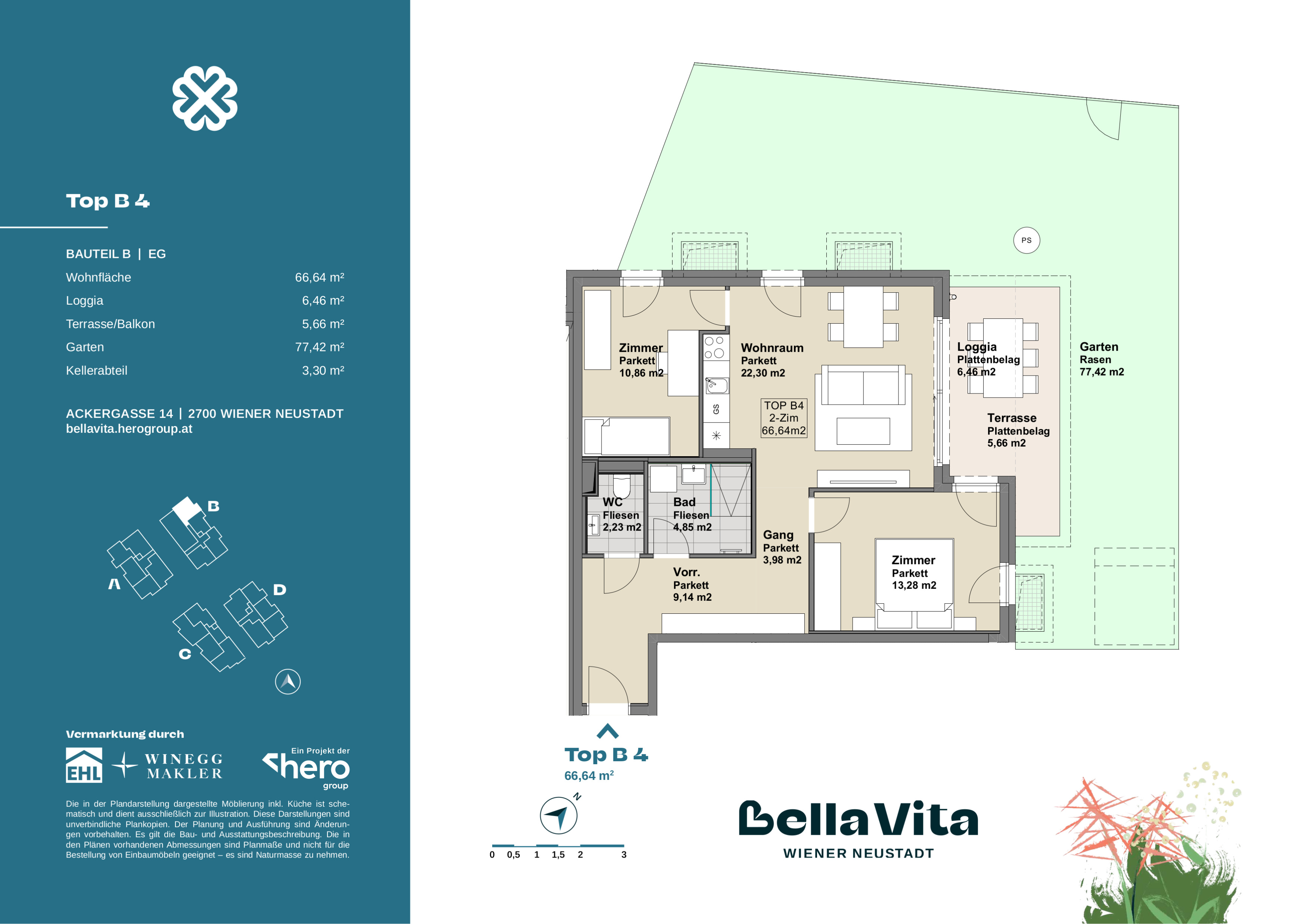 In Wiener Neustadt erwartet Sie ein modernes und einladendes Zuhause, das höchsten Ansprüchen gerecht wird. Das Projekt umfasst insgesamt vier Baukörper, die harmonisch in die grüne Umgebung eingebettet sind. Mit einem durchdachten Grünraumkonzept wird eine naturnahe Atmosphäre geschaffen, die Ruhe und Erholung ermöglicht.