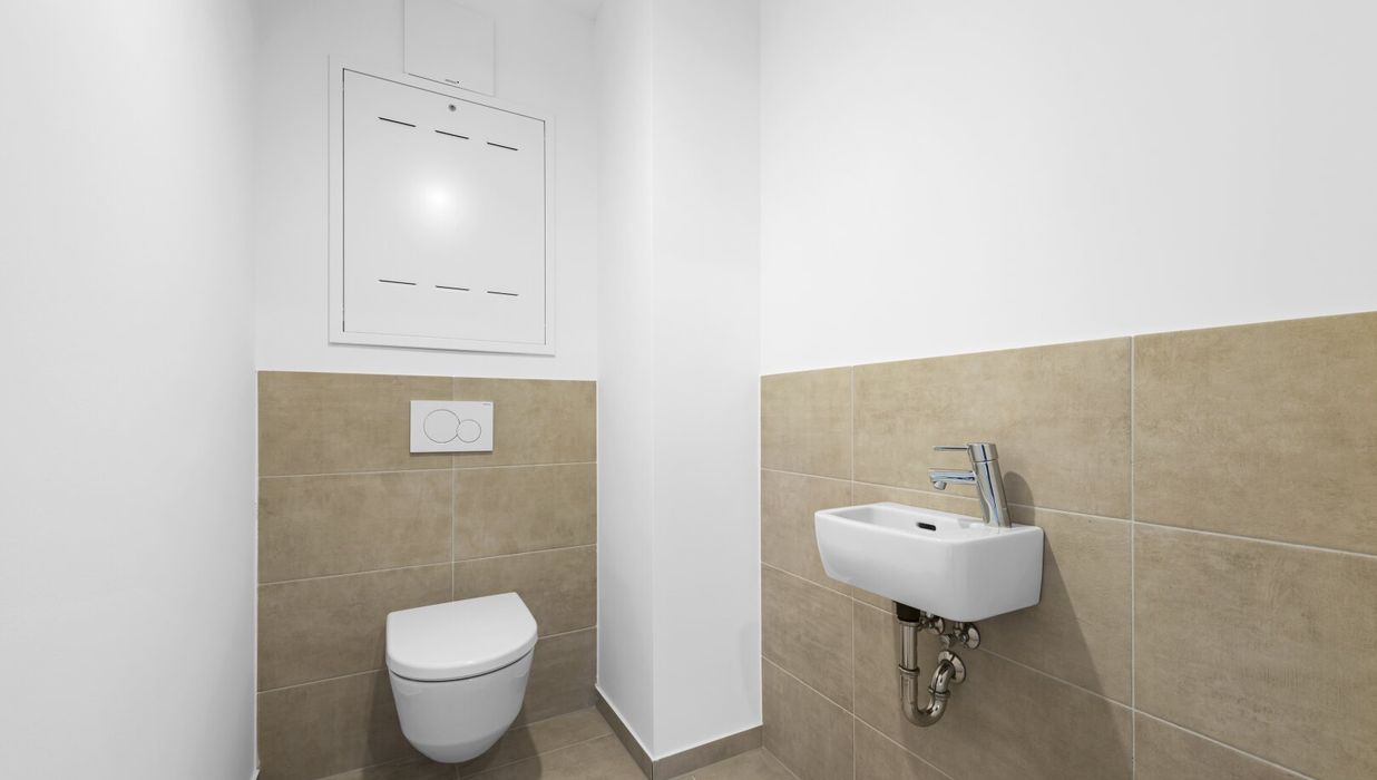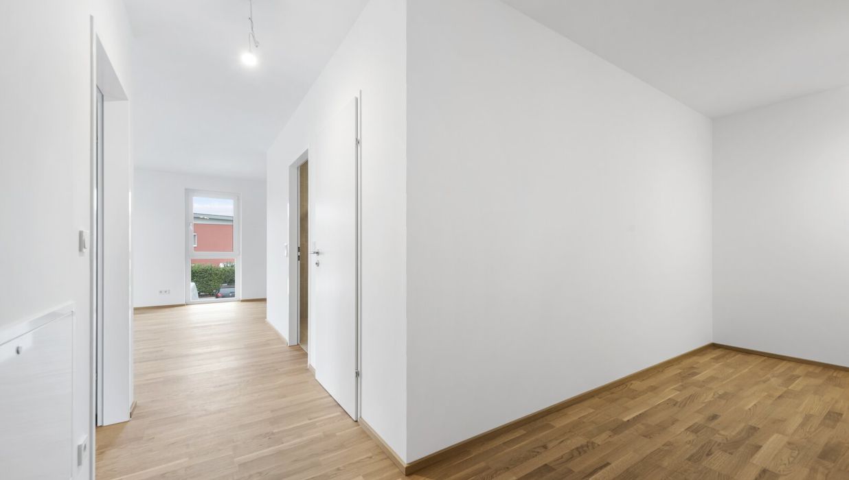 Fahrradabstellplätze, Kinderwagenraum, Spielplatz mit Pergola und Sitzmöglichkeiten sowie eine Tiefgarage vervollständigen das Angebot des durchdachten, modernen und nachhaltigen Projekts. Ein Tiefgaragenplatz ist zu erwerben (ab € 17.500,–).
