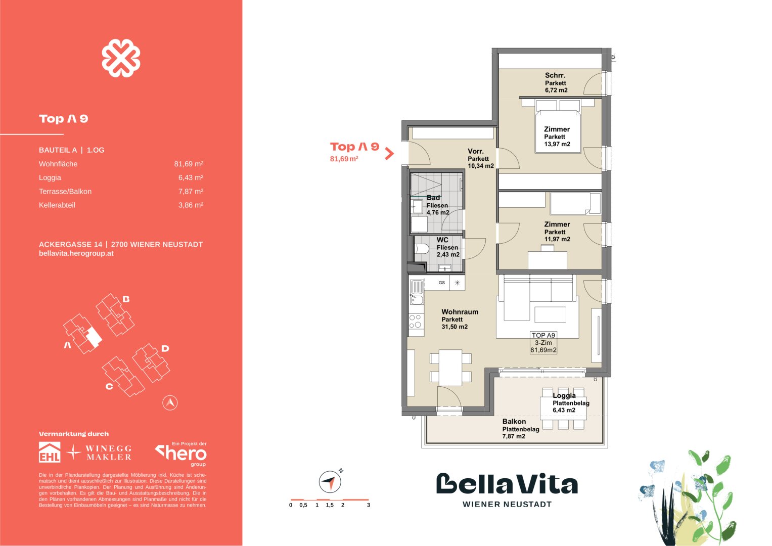 Das Wohnbauprojekt Bella Vita nahe des verzaubernden Wiener Neustädter Kanals steht für "schönes Leben" und das wird hier möglich. Im mediterranen Stil die Außen- und Allgemeinflächen: Gepflasterte Wege in Muschelkalk, Lauben und Schaukeln vermitteln Leichtigkeit, Gemütlichkeit und Wohlgefühl. Im Inneren überzeugende Raumaufteilung, stimmige Architektur, hochwertige Ausgestaltung. Und die Nachhaltigkeit stets im Blick, u.a. durch PV-Anlagen zur Energiegewinnung und einem Dachgeschoß in Holzhybridbauweise.