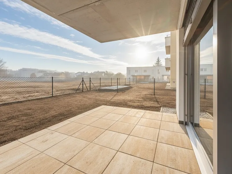 In Zukunft könnte Ihr Tag so starten: Sie blinzeln bereits beim Aufstehen durch die bodentiefen Fenster der Sonne entgegen, stellen Ihre Füße auf den angenehm natürlichen Holzboden und machen die erste Schritte in den Tag Richtung Badezimmer, wo Sie die mediterranen Fliesen gedanklich in den Süden reisen lassen. Jetzt fehlt nur noch der originale Espresso, den Sie in der geräumigen Wohnküche zubereiten und dessen Duft alle Sinne weckt. Nun aber raus ins Freie: die Hebe-Schiebetüre auf, den Geruch des frischen Tages einatmend und Sie wissen, wie bella Ihr Vita ist.