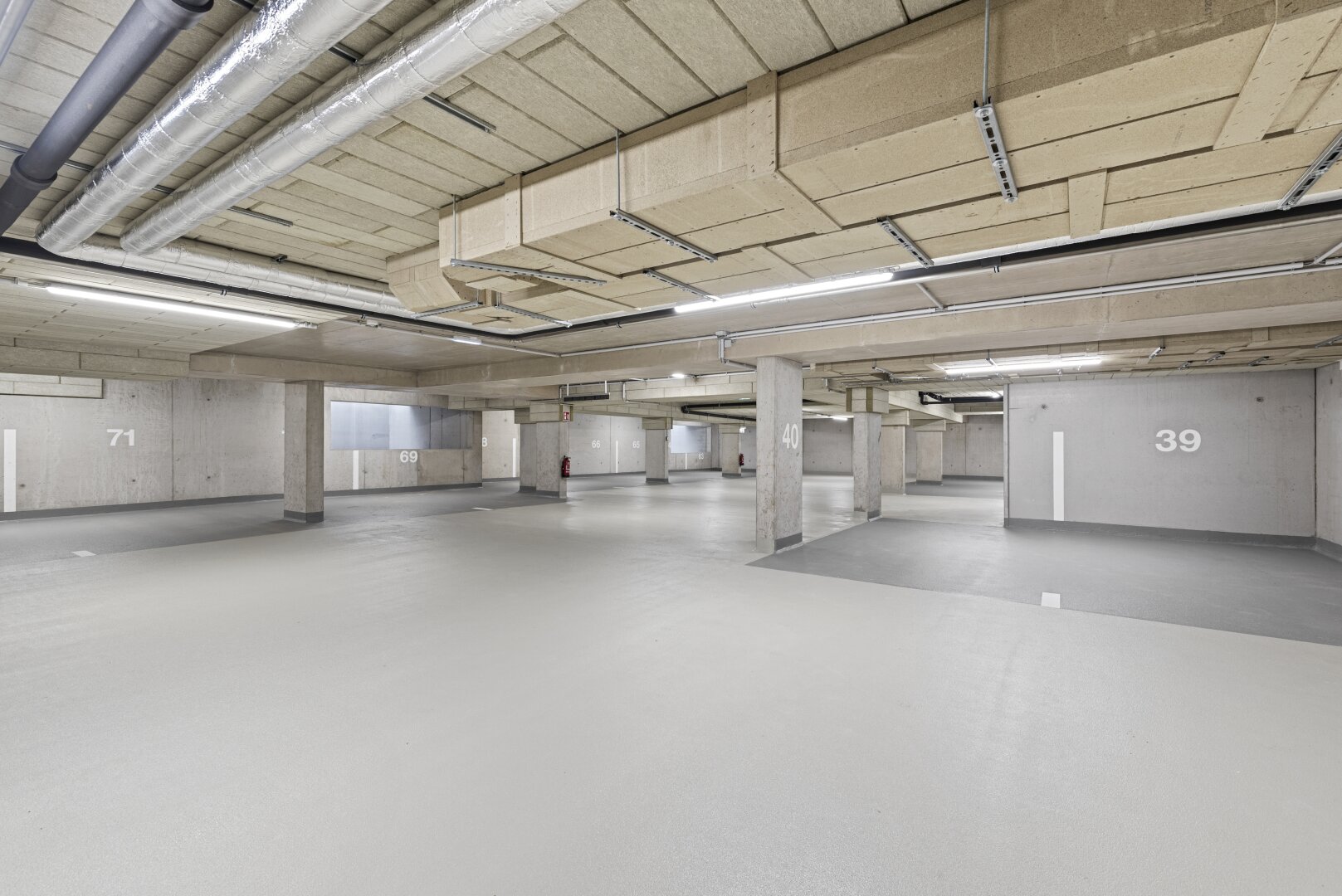 Fahrradabstellplätze, Kinderwagenraum, Spielplatz mit Pergola und Sitzmöglichkeiten sowie eine Tiefgarage vervollständigen das Angebot des durchdachten, modernen und nachhaltigen Projekts. Ein Tiefgaragenplatz ist zu erwerben (ab € 17.500,–).