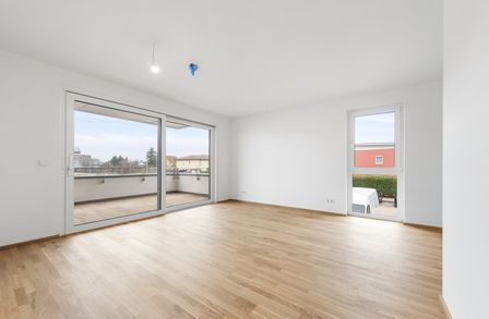 In Zukunft könnte Ihr Tag so starten: Sie blinzeln bereits beim Aufstehen durch die bodentiefen Fenster der Sonne entgegen, stellen Ihre Füße auf den angenehm natürlichen Holzboden und machen die erste Schritte in den Tag Richtung Badezimmer, wo Sie die mediterranen Fliesen gedanklich in den Süden reisen lassen. Jetzt fehlt nur noch der originale Espresso, den Sie in der geräumigen Wohnküche zubereiten und dessen Duft alle Sinne weckt. Nun aber raus ins Freie: die Hebe-Schiebetüre auf, den Geruch des frischen Tages einatmend und Sie wissen, wie bella Ihr Vita ist.