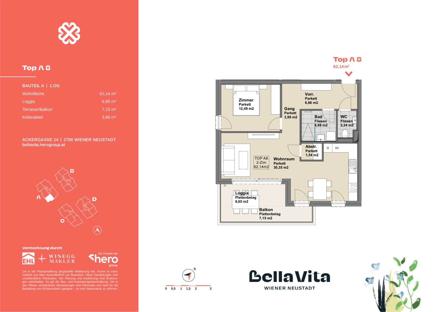 Das Wohnbauprojekt Bella Vita nahe des verzaubernden Wiener Neustädter Kanals steht für "schönes Leben" und das wird hier möglich. Im mediterranen Stil die Außen- und Allgemeinflächen: Gepflasterte Wege in Muschelkalk, Lauben und Schaukeln vermitteln Leichtigkeit, Gemütlichkeit und Wohlgefühl. Im Inneren überzeugende Raumaufteilung, stimmige Architektur, hochwertige Ausgestaltung. Und die Nachhaltigkeit stets im Blick, u.a. durch PV-Anlagen zur Energiegewinnung und einem Dachgeschoß in Holzhybridbauweise.