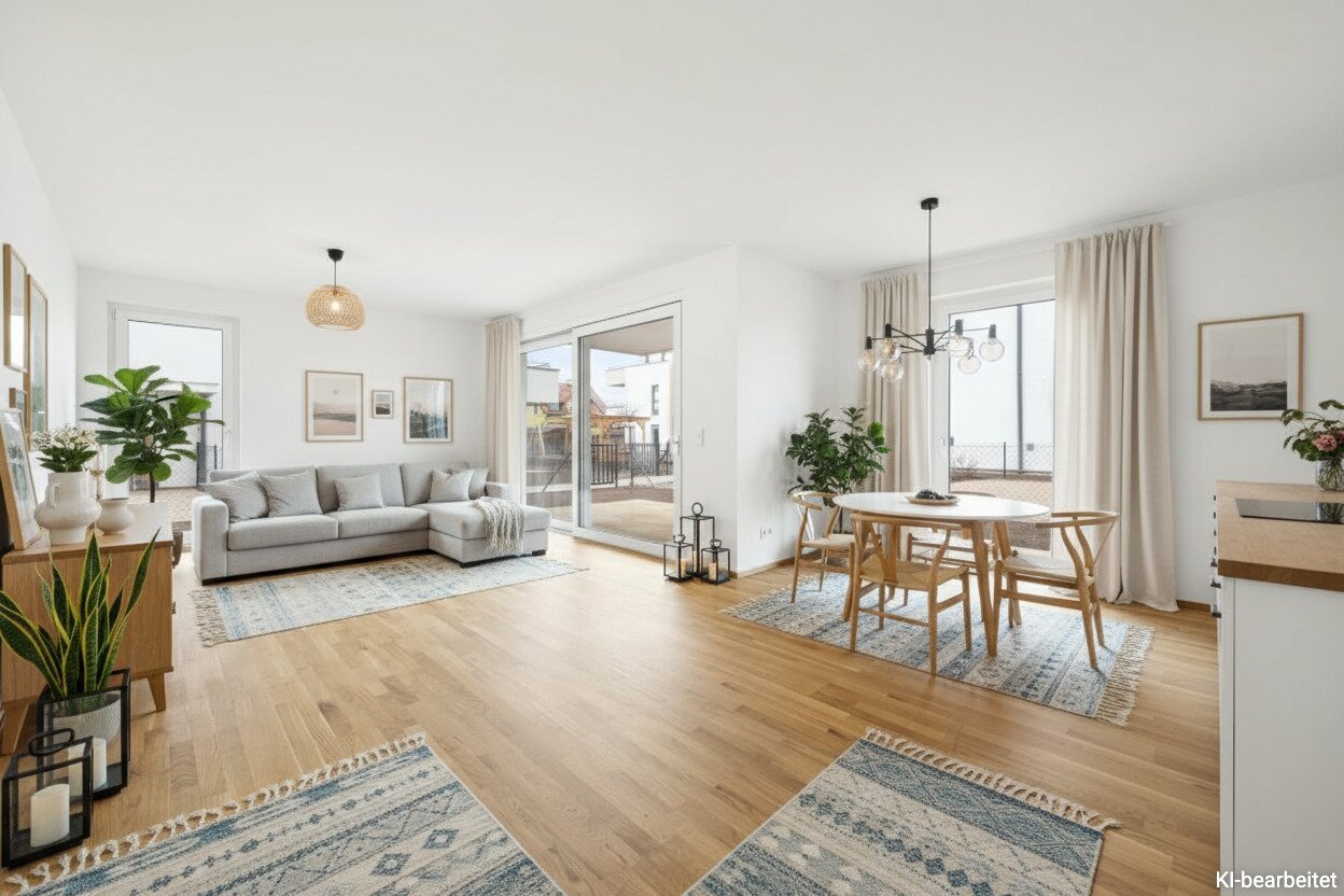 In Zukunft könnte Ihr Tag so starten: Sie blinzeln bereits beim Aufstehen durch die bodentiefen Fenster der Sonne entgegen, stellen Ihre Füße auf den angenehm natürlichen Holzboden und machen die erste Schritte in den Tag Richtung Badezimmer, wo Sie die mediterranen Fliesen gedanklich in den Süden reisen lassen. Jetzt fehlt nur noch der originale Espresso, den Sie in der geräumigen Wohnküche zubereiten und dessen Duft alle Sinne weckt. Nun aber raus ins Freie: die Hebe-Schiebetüre auf, den Geruch des frischen Tages einatmend und Sie wissen, wie bella Ihr Vita ist.