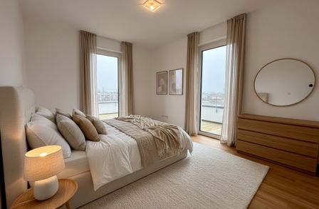 Sämtliche Wohnungen beeindrucken nicht nur durch ihre durchdachten Grundrisse, sondern auch durch ihre sehr hochwertige Ausstattung mit viel Liebe zum Detail. Die attraktive Grundrissgestaltung bietet großzügige Wohnbereiche und gemütliche Schlafzimmer. Zudem wurden Gärten, Balkone, Loggien und Terrassen integriert, welche zusätzlichen Freiraum bieten und den Genuss der umliegenden Grünflächen ermöglichen.