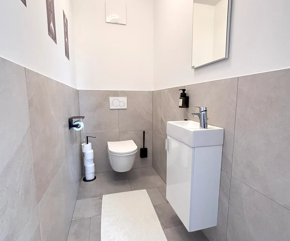 - Die Beheizung erfolgt über eine energieeffiziente Gas-Zentralheizung mit Solarunterstützung, was sowohl umweltfreundlich als auch kostensparend ist.