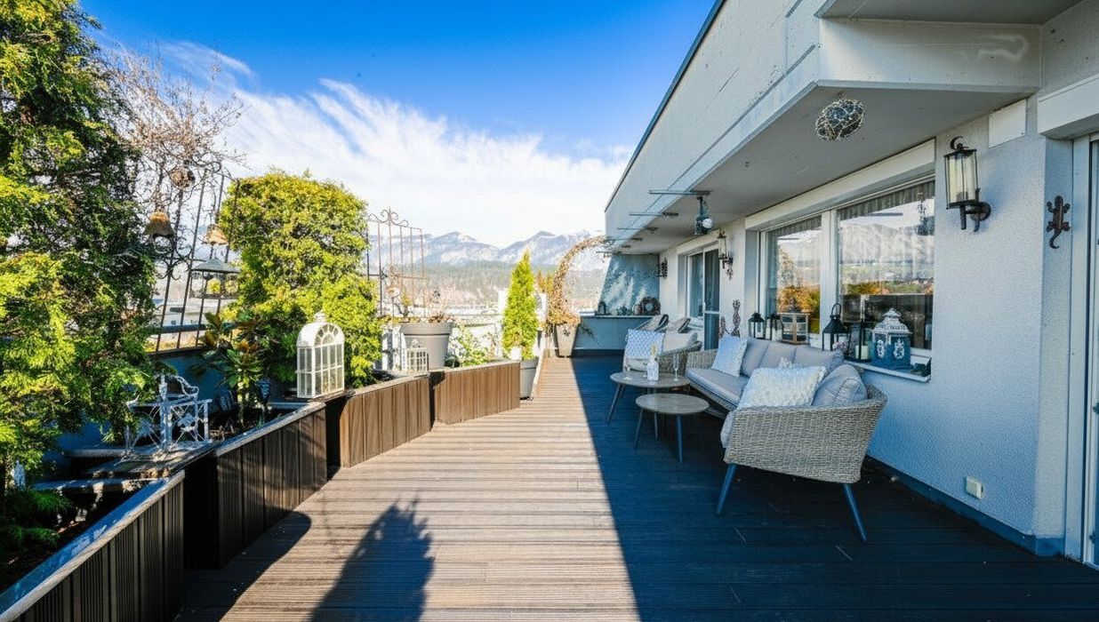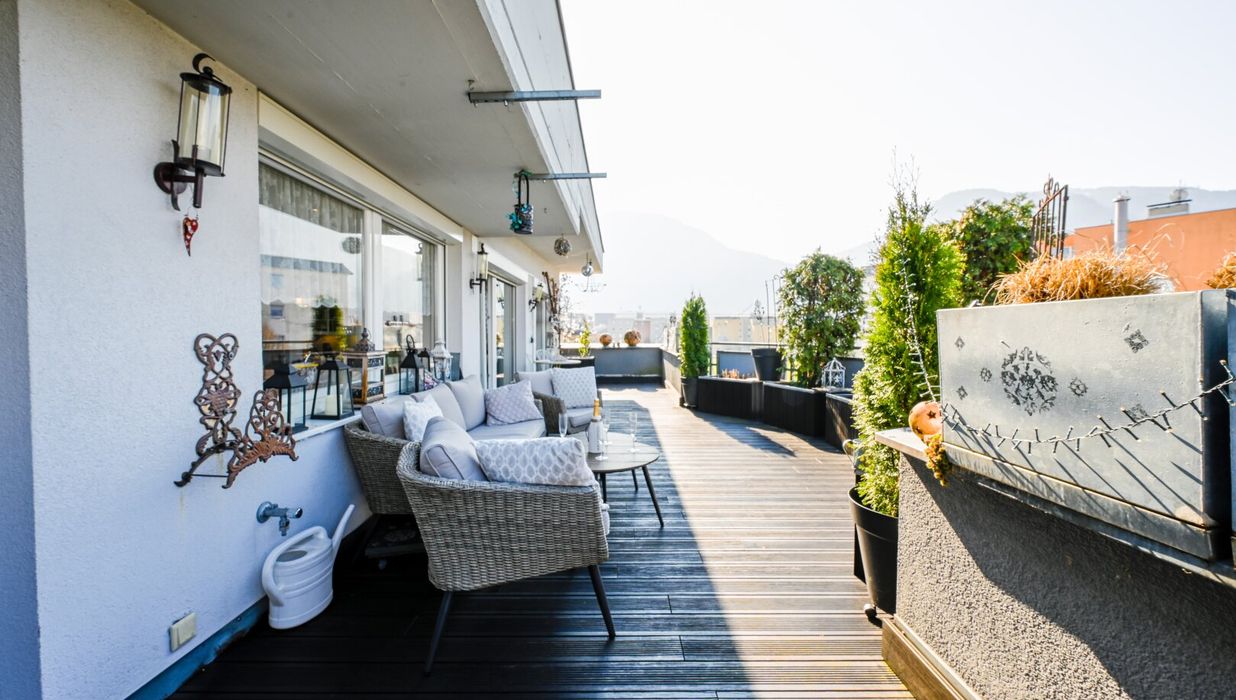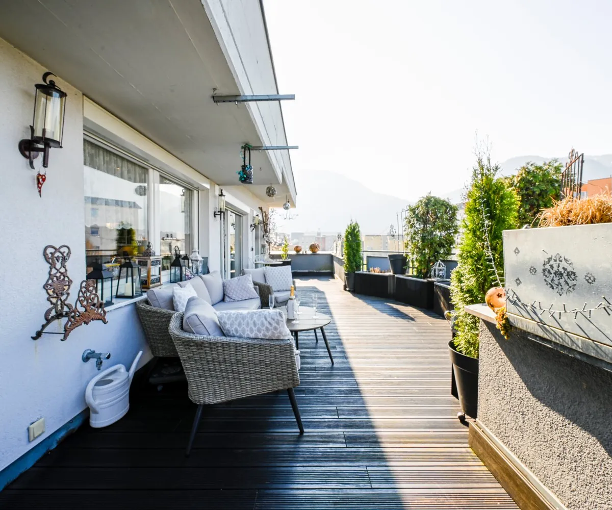 Hier genießen Sie Ruhe, Sonne und einen schönen Ausblick – perfekte Rückzugsorte im Freien, die den Wohnraum ideal erweitern.