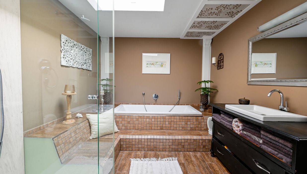 Zwei Badezimmer (zwei davon mit WC) sowie ein separates Gäste-WC für mehr Komfort