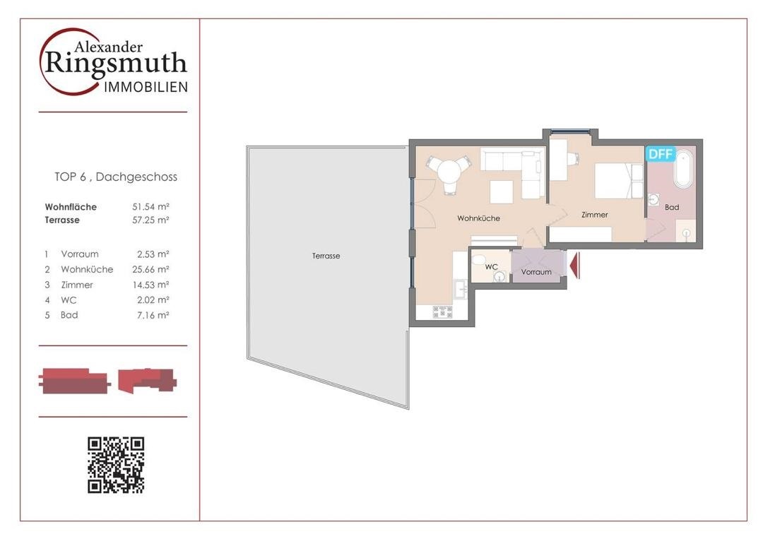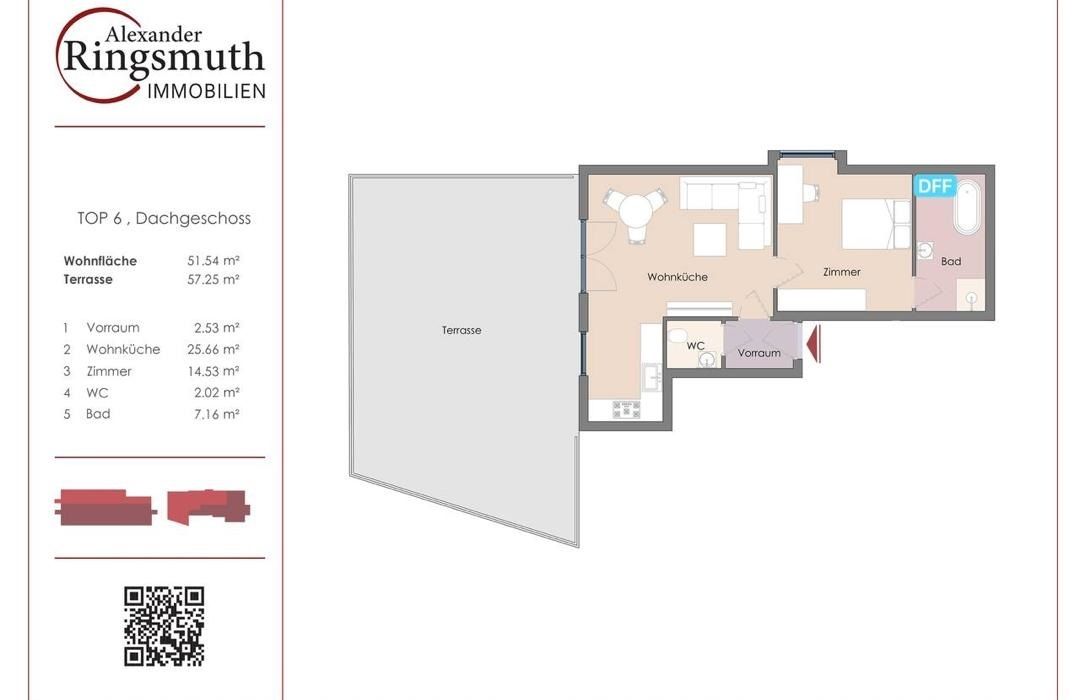 Auf einer Wohnfläche von ca. 51,54 m² erwartet Sie folgende Raumaufteilung: