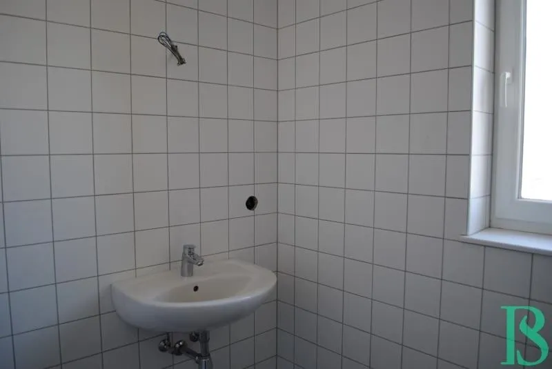 Vom Wohnzimmer aus ist die ca. 8m² große Sonnenterrasse mit dem ca. 85m² großen Garten zu betreten, wie von einem zweiten kleinen Vorraum aus die beiden ca. 14m² gleichgroßen Zimmer und auch das Bad mit Wanne, Waschtisch und Waschmaschinenanschluß.