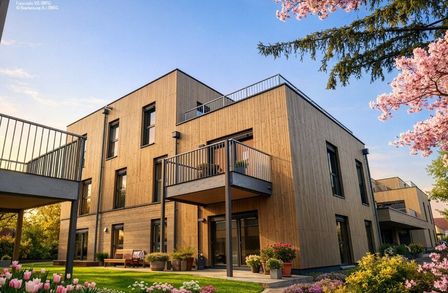 Alle Gebäude werden in Holzbauweise errichtet, die den CO2-Abdruck der Gebäude maßgeblich reduziert. Die Dächer werden überwiegend mit einer Intensivbegrünung zur Zwischenspeicherung des Niederschlagswassers ausgeführt. Ebenso werden die Dachflächen für die solare Energiegewinnung mittels Photovoltaik-Anlagen genutzt. Heizung, Warmwasserbereitung und Temperierung im Sommer erfolgen mittels Luft-Wärmepumpen auf jedem Gebäude, die auch als primäre Abnehmer der Energiegewinnung aus der Photovoltaik-Anlage dienen. Die Wärme- und Temperierungsabgabe erfolgt über Bauteilaktivierung des Fußbodenaufbaus.
