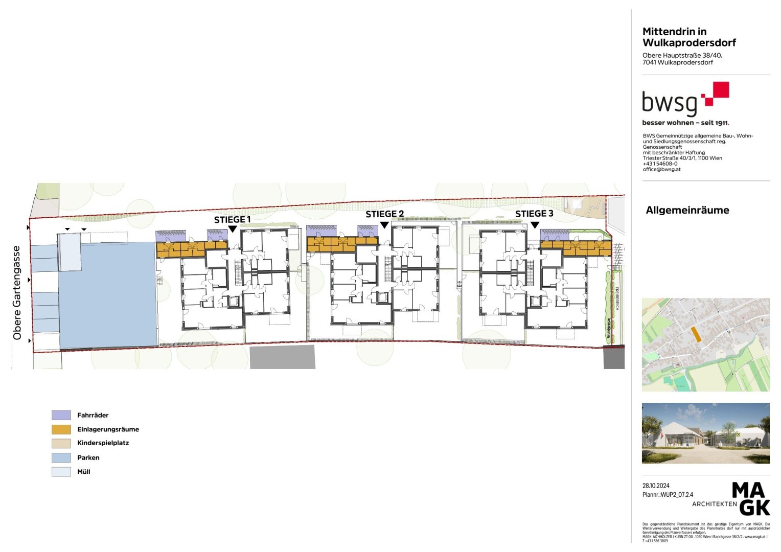 Zwischen der Oberen Hauptstraße 38–40 und der Oberen Gartengasse entstehen vier Gebäude mit insgesamt 30 Wohnungen und einem Gewerbezentrum mit Fokus auf das Gesundheitswesen. Neben einer Apotheke sind mehrere Ordinationen und eine Bank geplant.