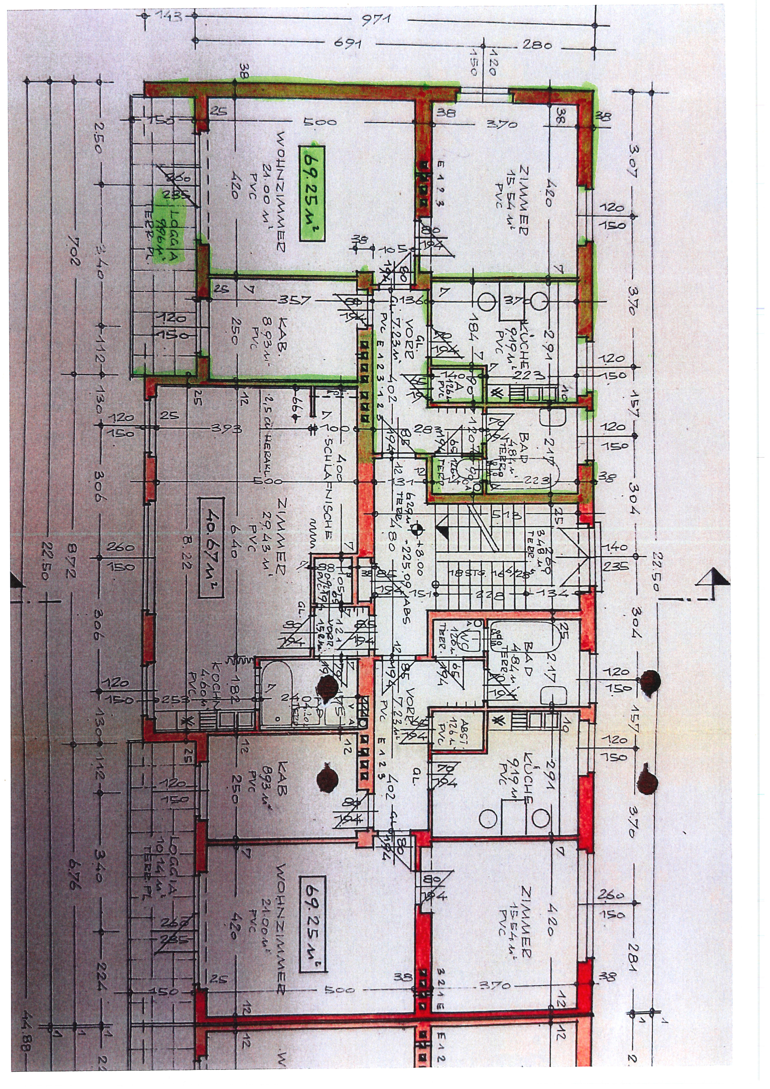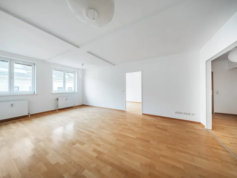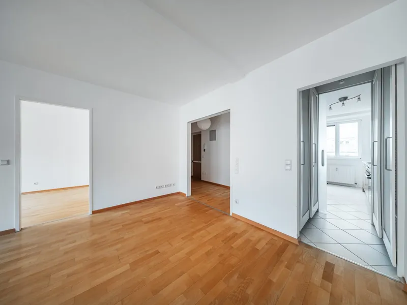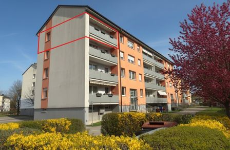 * Aufteilung Vorraum, Abstellraum, WC, Bad mit Wanne, 2 Zimmer, Küche, Wohnzimmer mit Zugang zur Loggia