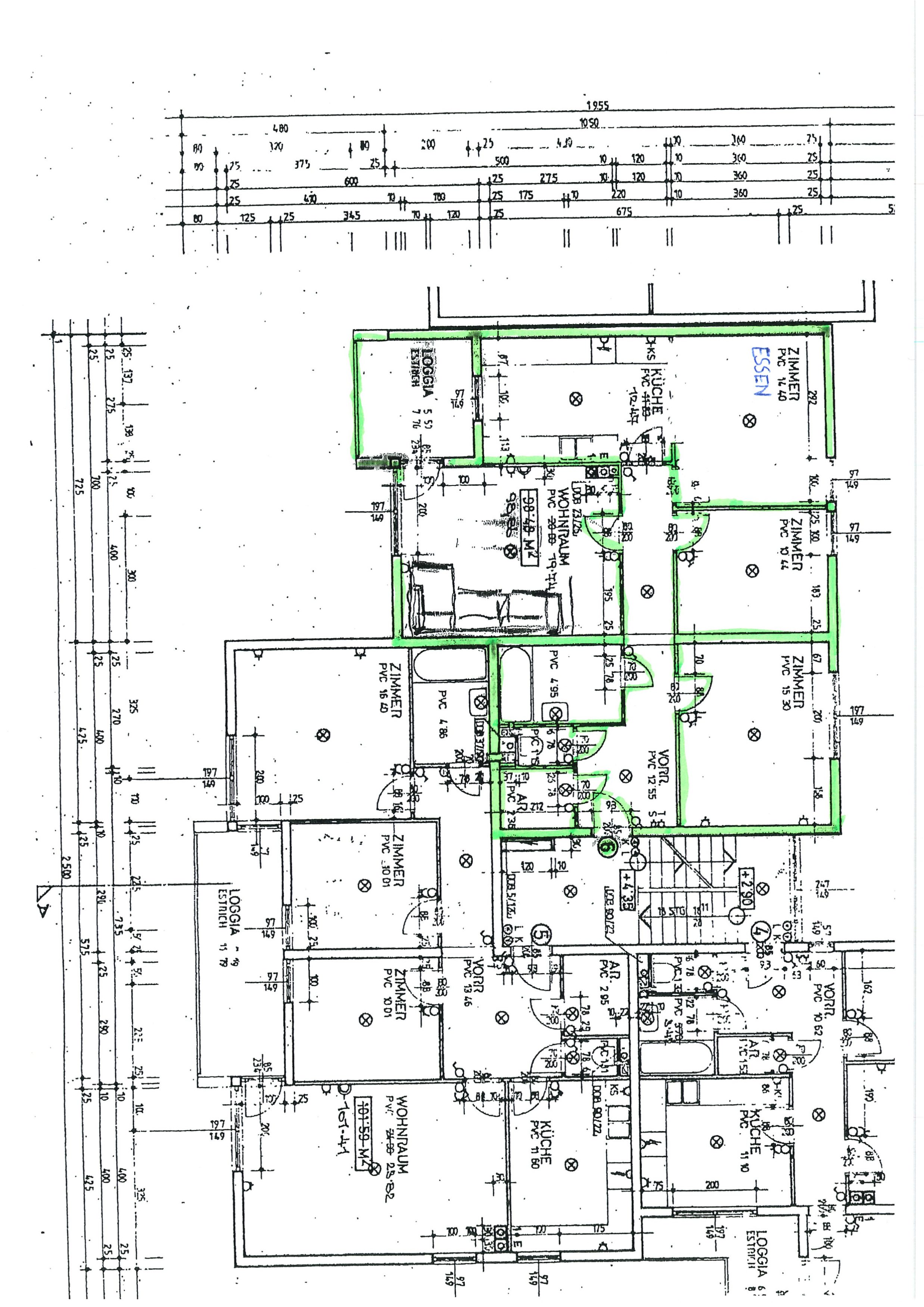 * Raumaufteilung: VR, AR mit WM Anschluss, WC, Küche mit großen Essbereich, Bad mit Wanne, 2 Schlafzimmer, Wohnzimmer mit Zugang zur Loggia