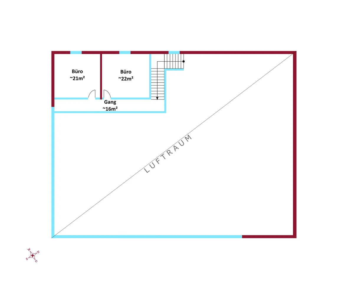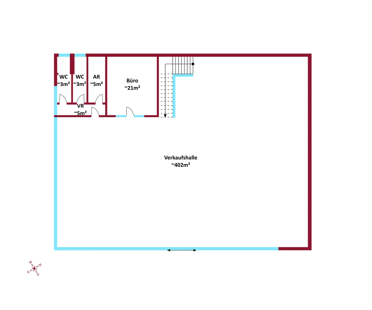 Auf einer Nutzfläche von rund 500m² stehen weiters folgende Räumlichkeiten zur Verfügung: