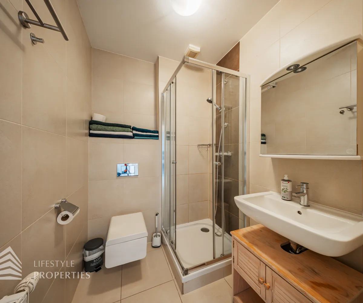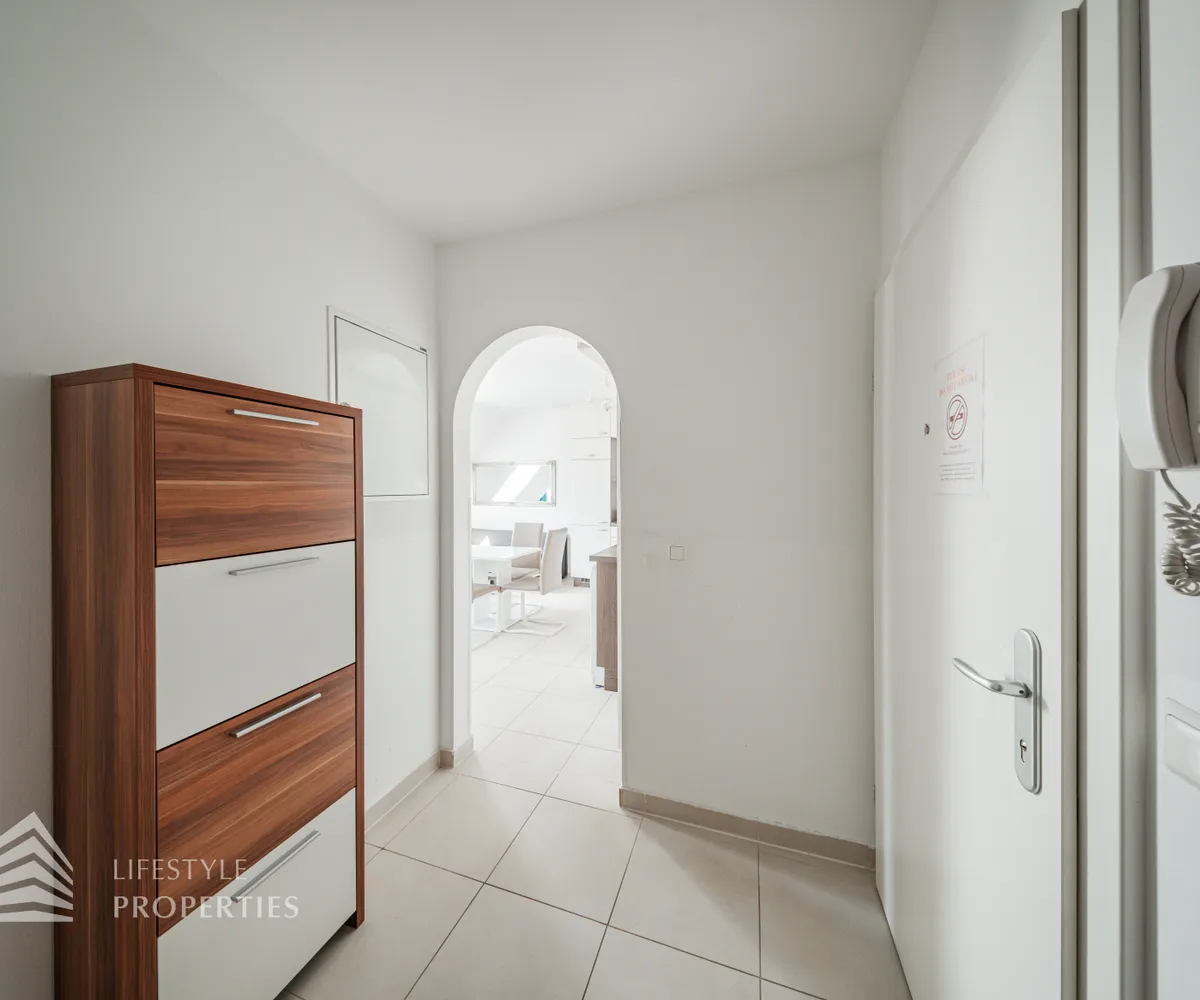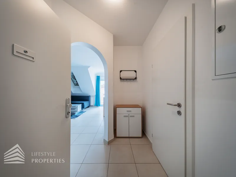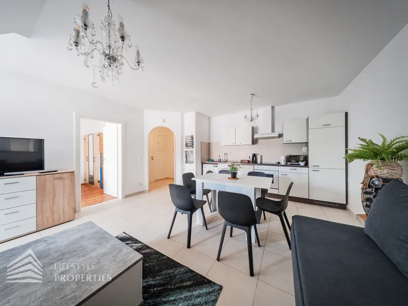 Das Gebäude umfasst 3 Stockwerke plus Keller und wurde im Jahr 2009 als Neubau errichtet und seither modernisiert. Die Apartments bieten eine moderne Ausstattung mit Wohnzimmer, Schlafsofas, Flachbild-TV, voll ausgestatteter Küche, Waschmaschine und Badezimmer mit Dusche. Ein Teil der Stellplätze wird aktuell als Außen-Lounge genutzt und bietet einen gemütlichen Bereich für Gäste. Optional können zwei Geschäftslokale, welche sich im Erdgeschoss befinden zusätzlich erworben werden, somit würden Sie 100% der Immobilie besitzen.