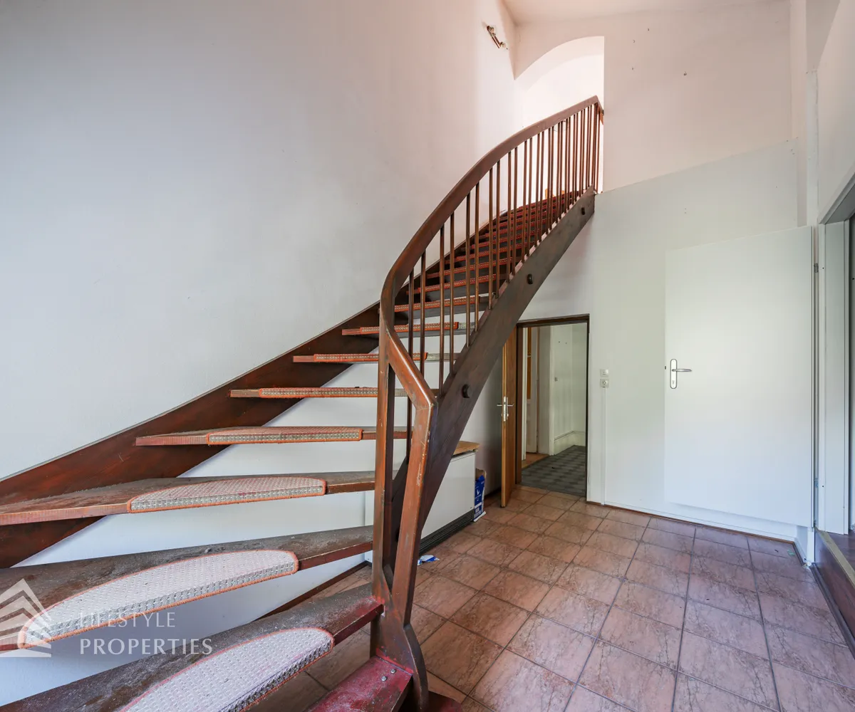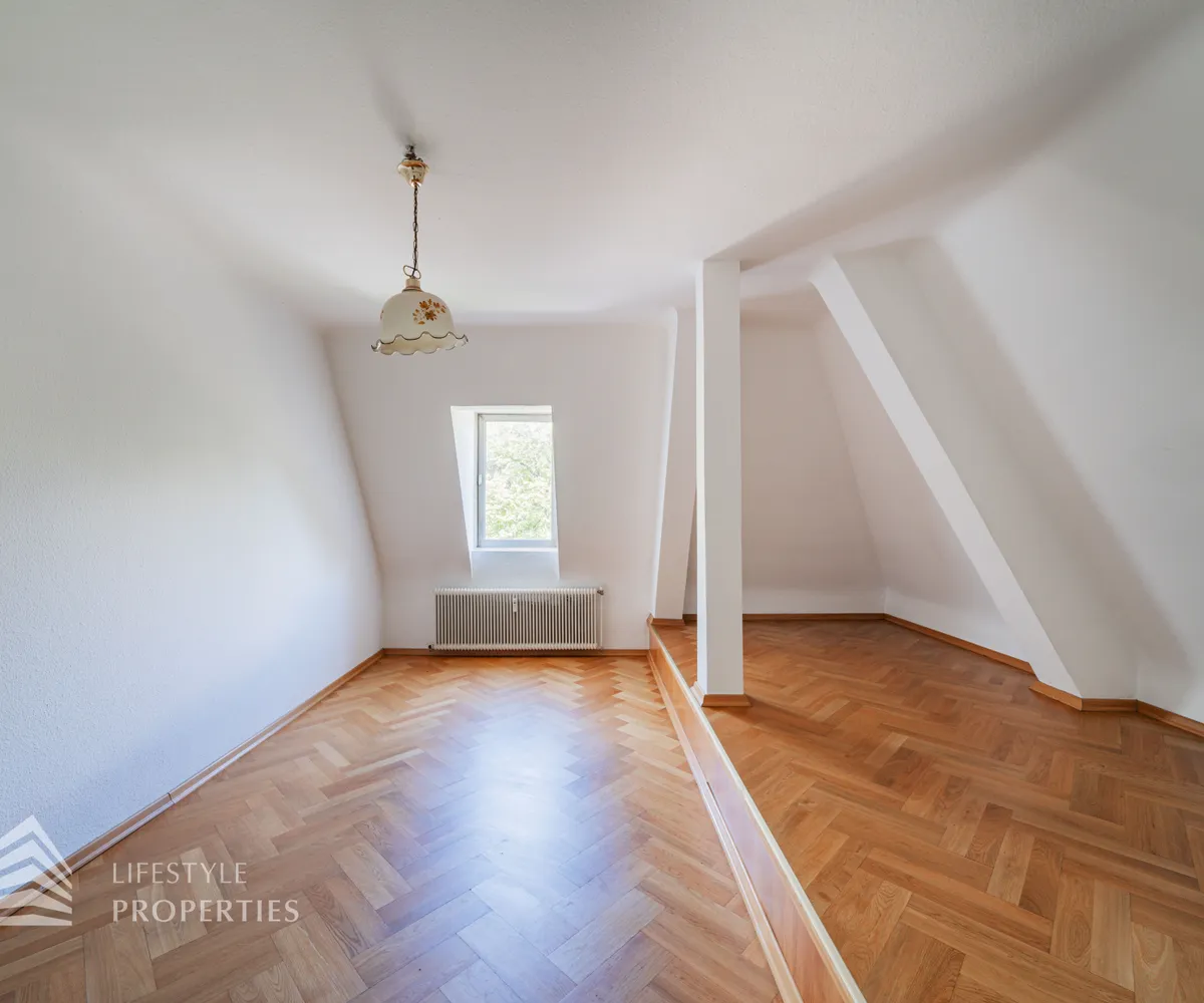 Das ca. 192 m² große Dachgeschoss ist ebenfalls über eine Treppe erreichbar. In diesem haben Sie Zugang zu zwei Einheiten. Hier befindet sich die größte der sieben Einheiten. Auf einer unglaublichen Fläche von ca. 170 m² bleiben hier keine Wünsche mehr offen. Diese Einheit bietet Ihnen fünf großflächige Zimmer, eine Küche, ein Badezimmer, eine separate Toilette und zwei Abstellräume. Zusätzlichen haben Sie Zugang zu einem charmanten Balkon und einer unglaublichen ca. 70 m großen Terrasse, auf welcher Sie im Schatten des Altbaumbestandes entspannen können. Die zweite Einheit erstreckt sich über das 1. und 2. Dachgeschoss und bietet eine Wohnfläche von ca. 116 m². Sie betreten die Wohnung im 1. Dachgeschoss und finden hier einen großzügigen Eingangsbereich mit einer Treppe und einen Abstellraum. Die Treppe führt Sie in das nächste Geschoss, in welchem Sie drei Zimmer, eine Küche, ein Badezimmer, einen Vorraum sowie einen Abstellraum finden.
