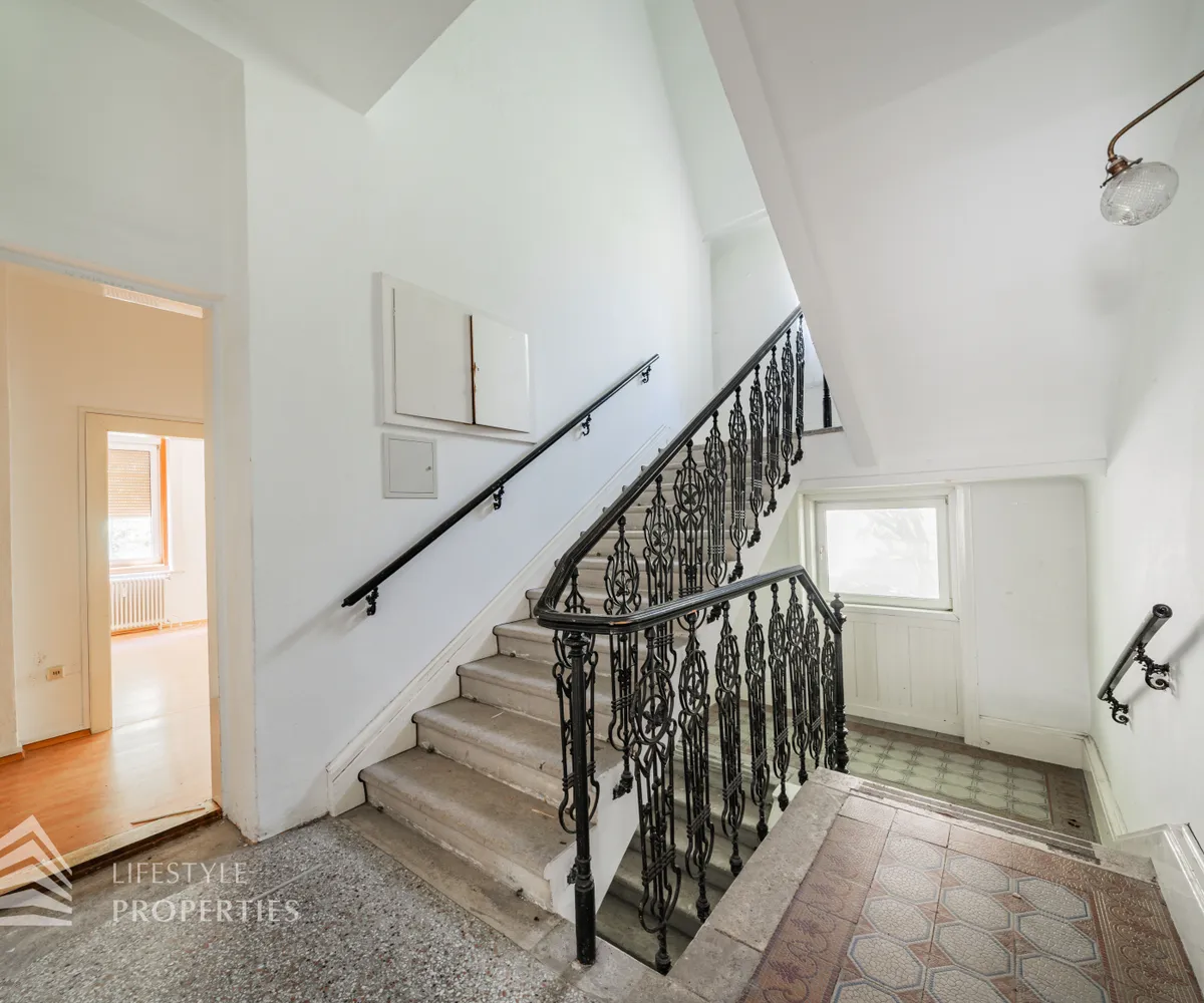 Die traumhafte Villa wurde im Jahre 1906 auf einem wunderschönen ca. 1.909 m² großen Grundstück errichtet. Ein Blick auf die stilvoll gestaltete Fassade reicht aus um von diesem schönen Objekt zu überzeugen. Die ca. 619 m² Wohnfläche erstreckt sich auf vier Stockwerke und teilt sich auf in 20 Wohnräume sowie 6 Badezimmer und 5 separate WC´s. Die Wohnfläche lässt sich ebenfalls in sieben Wohneinheiten aufteilen. Eleganter Fischgrätparkett sowie stillvolle Fliesen schmücken die Böden des bezaubernden Hauses. Auf einer Gesamtnutzfläche von ca. 965 m² bietet das Haus zusätzlich eine Waschküche, einen Heizraum, einen Öltankraum, vier Abstellräume sowie zwei Balkone und zwei großflächige Terrassen. Eine hauseigene Garage ist ebenfalls enthalten.