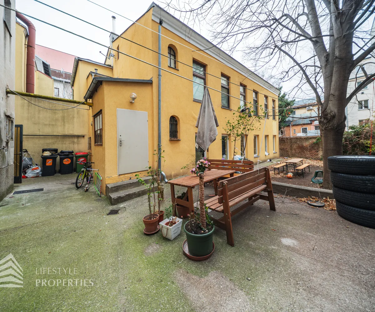 Das Zinshaus teilt sich in ein Straßengebäude und ein Hofgebäude auf und umfasst insgesamt 5 Einheiten. Die Einheiten erstrecken sich über 3 Geschosse (EG, 1.OG, 2.OG), zusätzlich gibt es einen Keller.