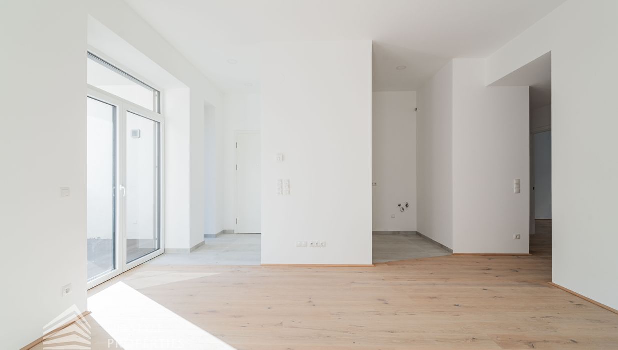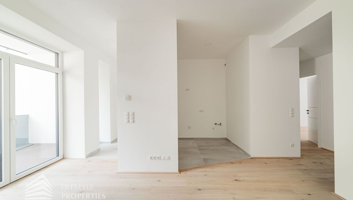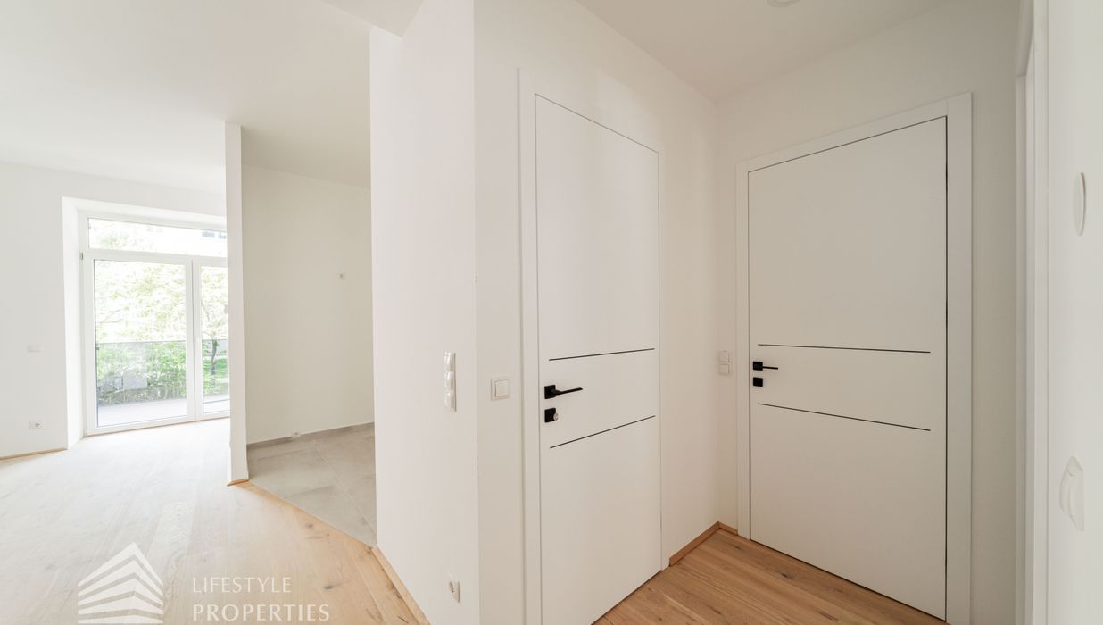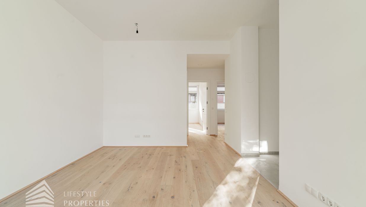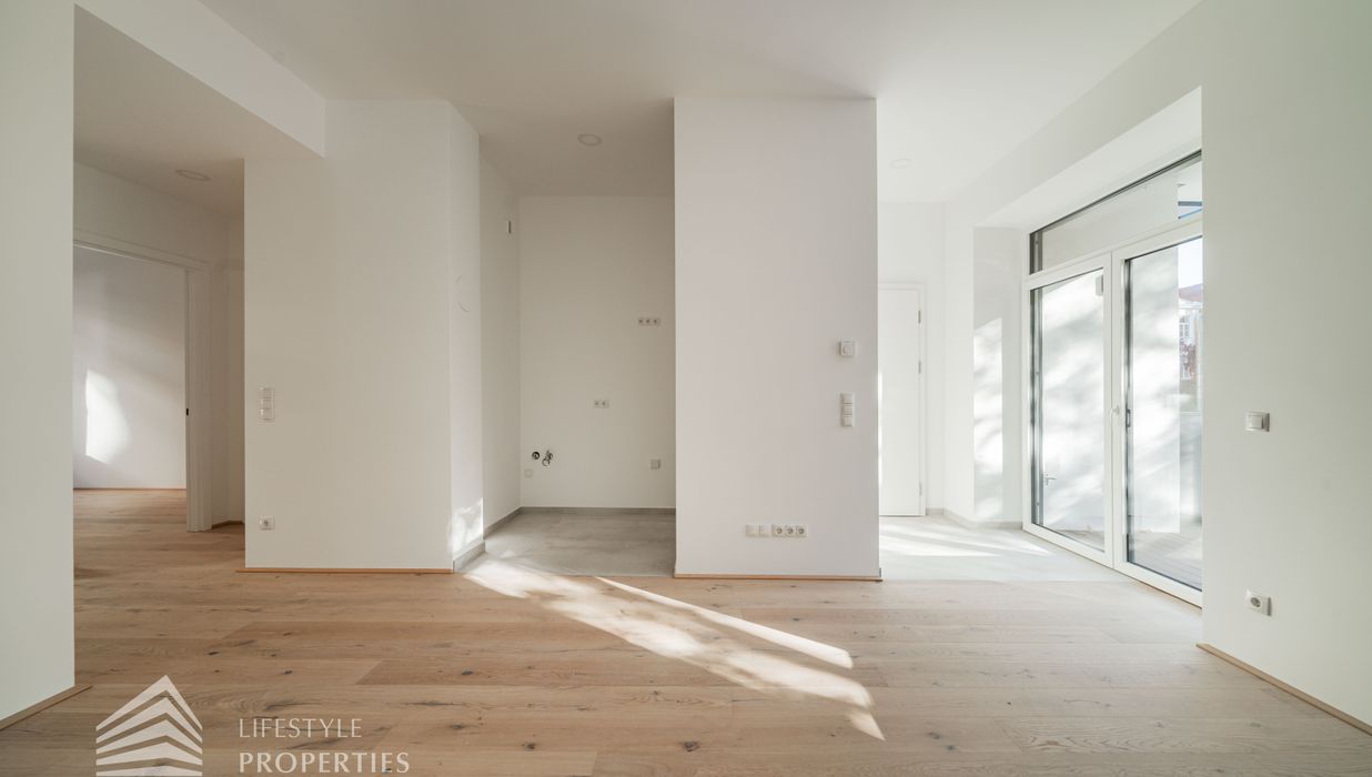 Die zum Verkauf stehenden Wohnungen verfügen über Fußbodenheizung, 3-fach verglaste Kunststofffenster und -terrassentüren mit außenliegendem Sonnenschutz, Parkettboden in den Haupträumen sowie Fliesen in den Nassräumen.