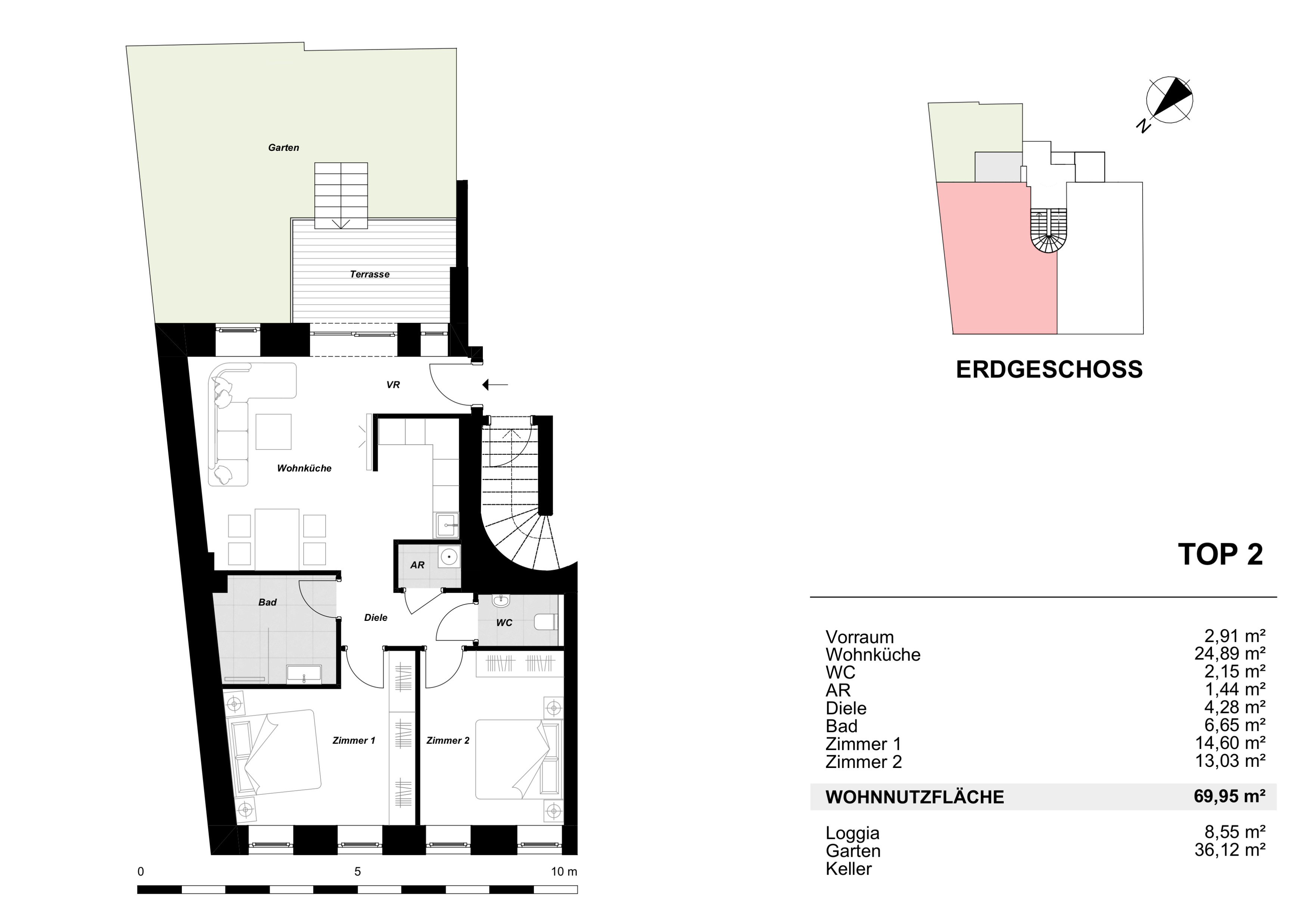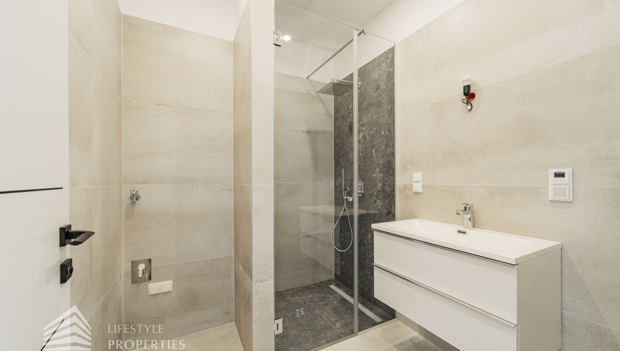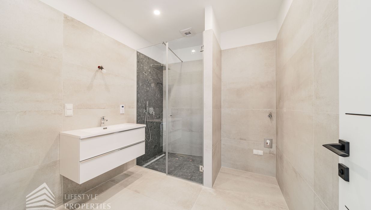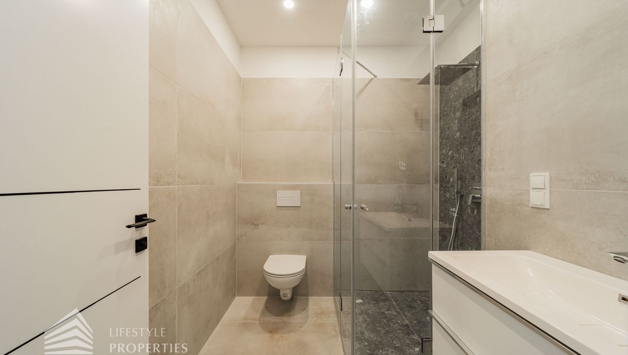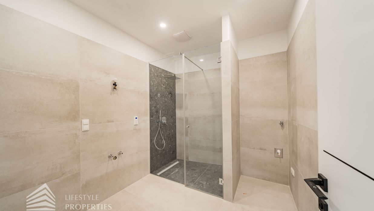 Die zum Verkauf stehenden Wohnungen verfügen über Fußbodenheizung, 3-fach verglaste Kunststofffenster und -terrassentüren mit außenliegendem Sonnenschutz, Parkettboden in den Haupträumen sowie Fliesen in den Nassräumen.