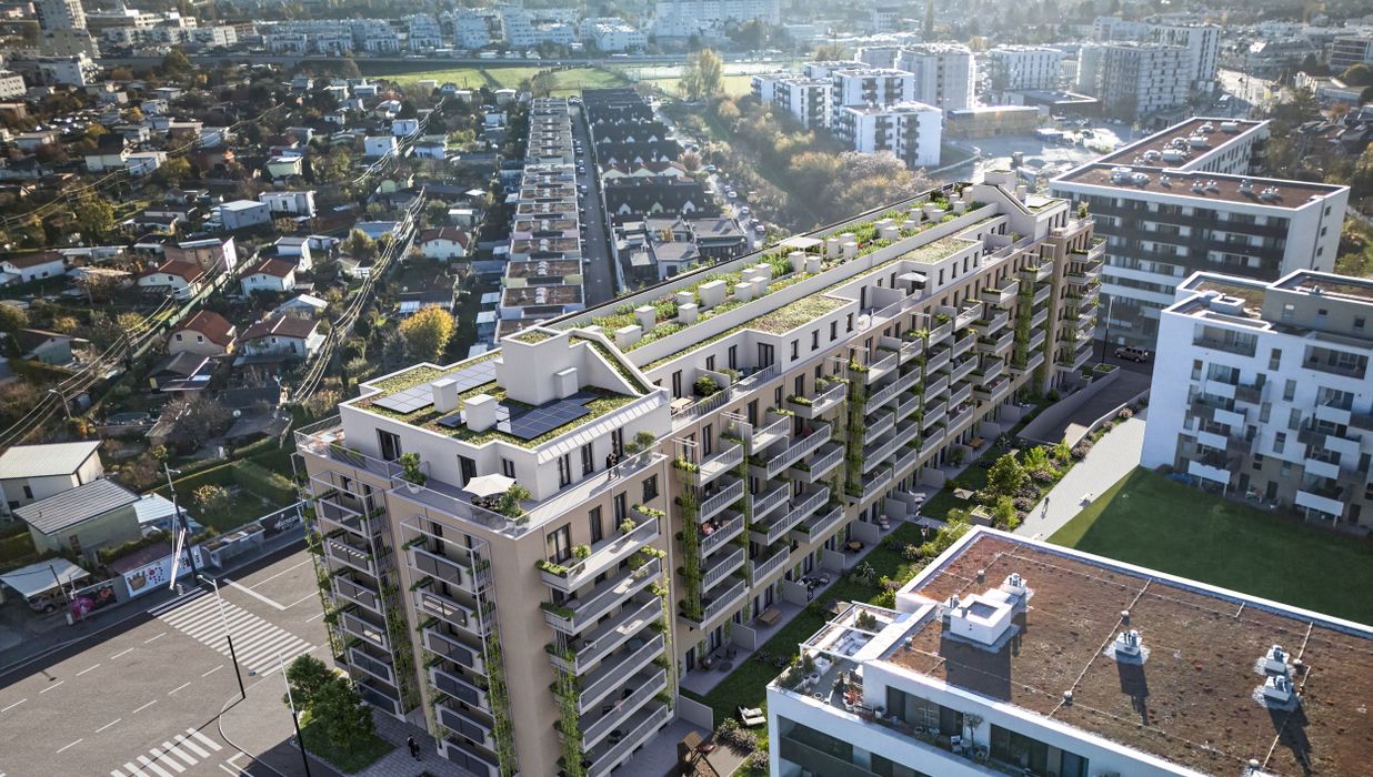 Das Projekt setzt konsequent auf energieeffiziente Bauweise und moderne Haustechnik. Photovoltaikanlagen, geringe Heizwärmebedarfswerte und eine kompakte Gebäudestruktur tragen zu niedrigen laufenden Kosten bei. Die monatlichen Betriebskosten liegen bei unter EUR 3,–/m² Wohnfläche (inkl. USt., exkl. verbrauchsabhängiger Kosten) – ein klarer Vorteil für Eigennutzer wie auch für Investoren.
