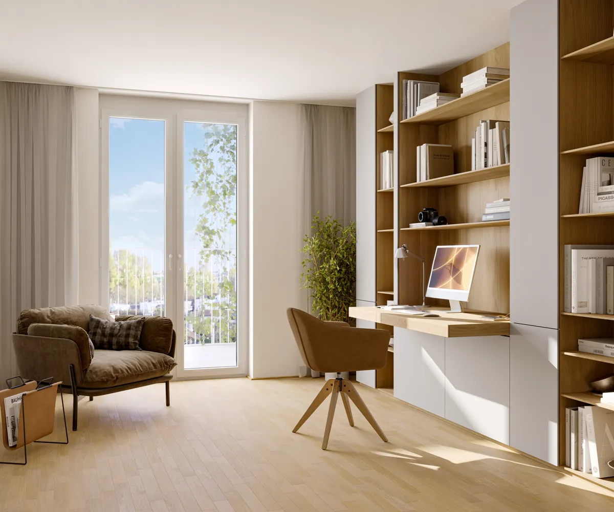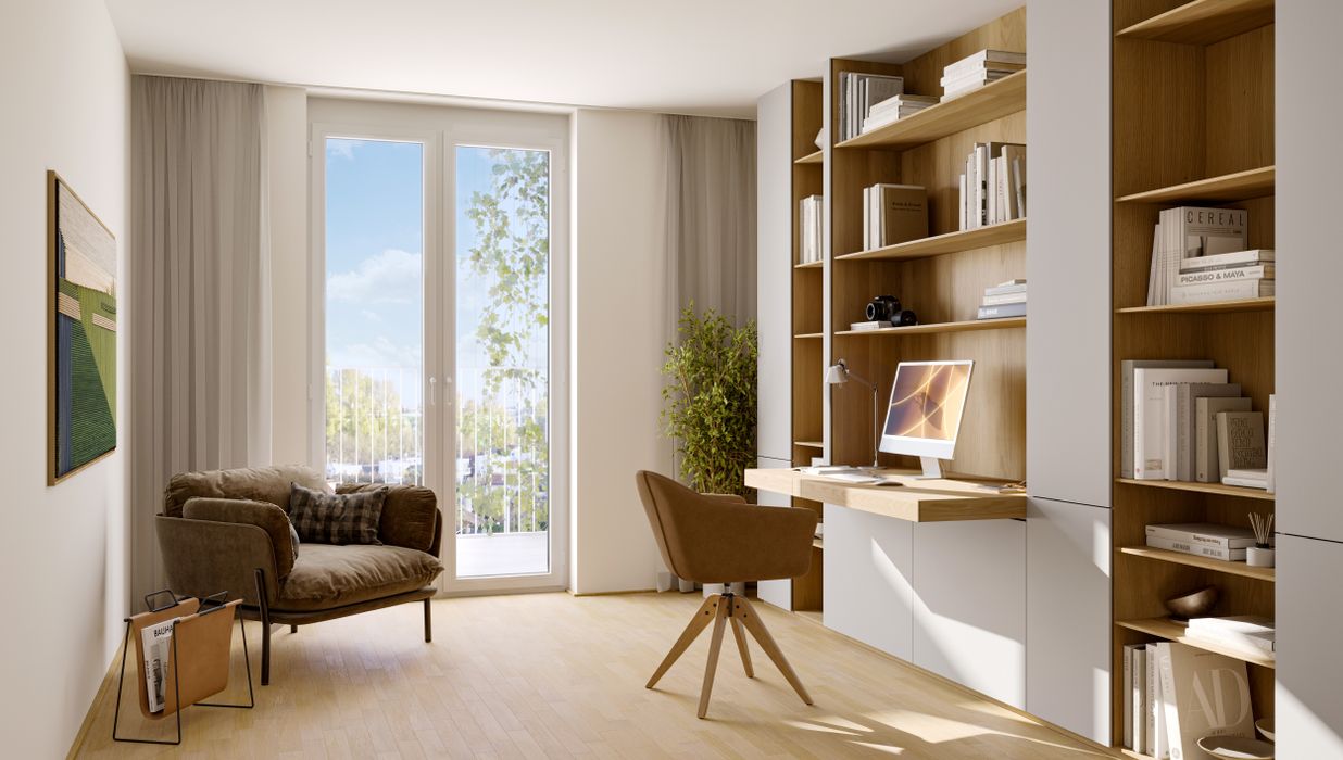 Ein Teil der Einheiten ist speziell für kombinierte Wohn- und Arbeitsmodelle konzipiert. Ob Homeoffice, Praxis, Atelier oder separater Arbeitsbereich mit eigenem Zugang – diese Apartments bieten maximale Flexibilität für zeitgemäße Lebens- und Arbeitsformen.