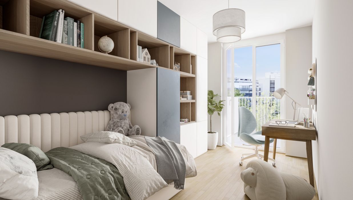 Familien stehen bei diesem Projekt klar im Mittelpunkt. Zahlreiche Wohneinheiten mit durchdachten Grundrissen bieten Lösungen für unterschiedlichste Familienkonstellationen – von Maisonette-Wohnungen mit Eigengarten bis hin zu Wohnungen in oberen Etagen mit großzügigen Balkonen und flexibel nutzbaren Arbeitsbereichen. Exklusive Dachgeschosswohnungen setzen neue Maßstäbe im Familienwohnen und bieten weitläufige Terrassen sowie klar abgegrenzte Bereiche für Gäste oder Homeoffice. Private Einlagerungsräume auf jeder Etage sorgen für zusätzlichen Komfort und Ordnung im Alltag.