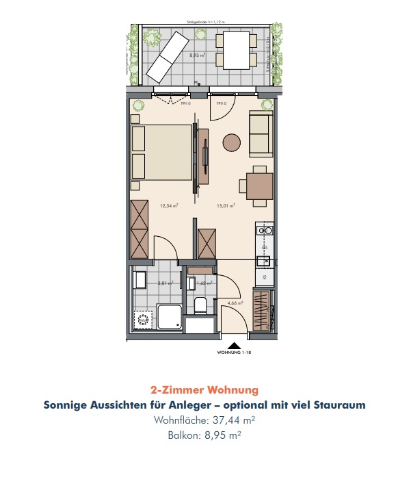 • Tiefe Balkone und Terrassen, bis zu ca. 30 % der Wohnfläche