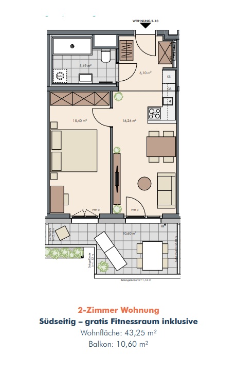 Top 2-18/ 2.OG / 47,8 m² WNF / 11,9 m² Freifläche / 264.000 € Netto KP / 297.000 € Brutto KP