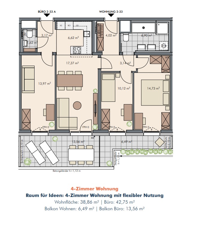 Top 2-02 +A/ EG+1.OG / 84,2 m² WNF / 31,3 m² Freifläche / 425.000 € Netto KP / 477.000 € Brutto KP