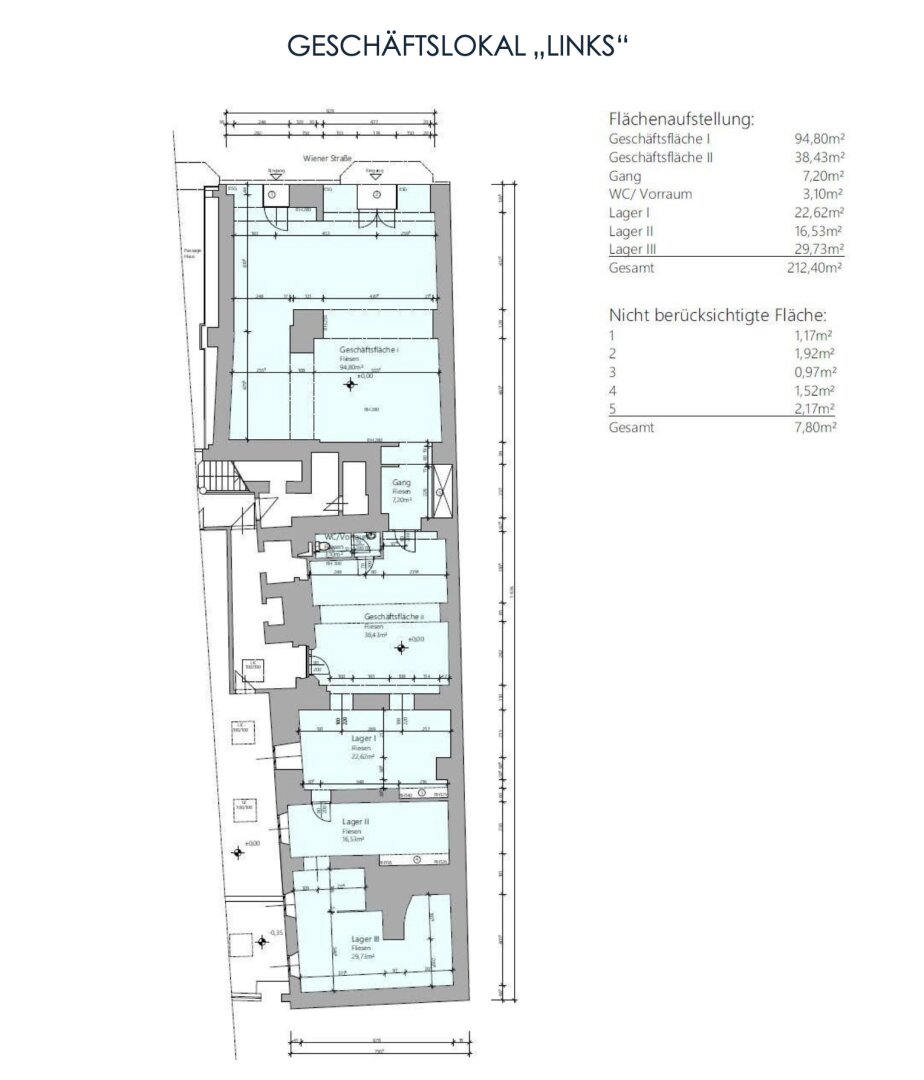 Das Haus hat eine Gesamtnutzfläche von ca. 744 m 2 und besteht aus Erdgeschoß , dem ersten Obergeschoß sowie dem Rohdachboden . Das Objekt gliedert sich in zwei Geschäftslokale (ca. 477 m 2 ) sowie drei exklusive Wohnungen (ca. 267 m 2 ).