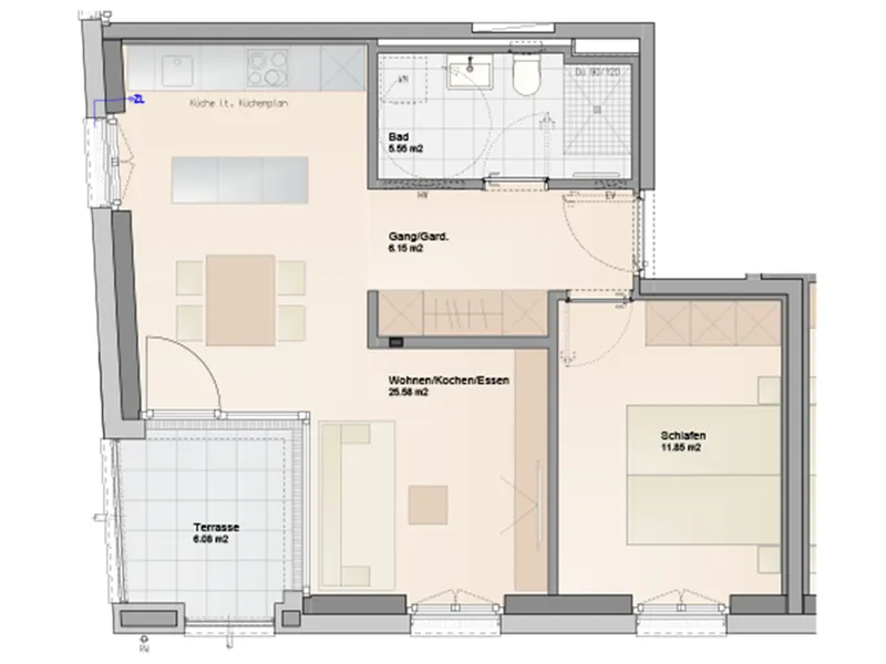 ca. 51,66 m² Wohnfläche 2 Zimmer